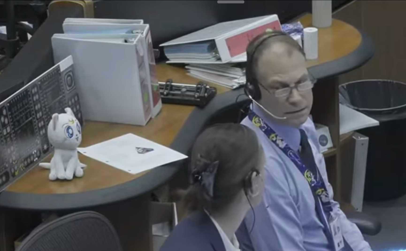 在美国宇航局(NASA)的“阿尔忒弥斯2号”(Artemis II)绕月任务控制中心的通信区(CAPCOM)有一只动漫猫的玩偶,形象来自日本动漫《美少女战士》中一只名叫“阿尔忒弥斯”的公猫,这个玩偶很可能属于担任“阿耳忒弥斯2号”任务首席CAPCOM(负责与飞船通信的负责人)的宇航员斯坦利·G·拉夫(Stanley G. Love)。他还戴着《美少女战士》的挂绳,他的个人简介中显示其热爱看日本动漫(anime)阿尔忒弥斯二号载人掠月任务