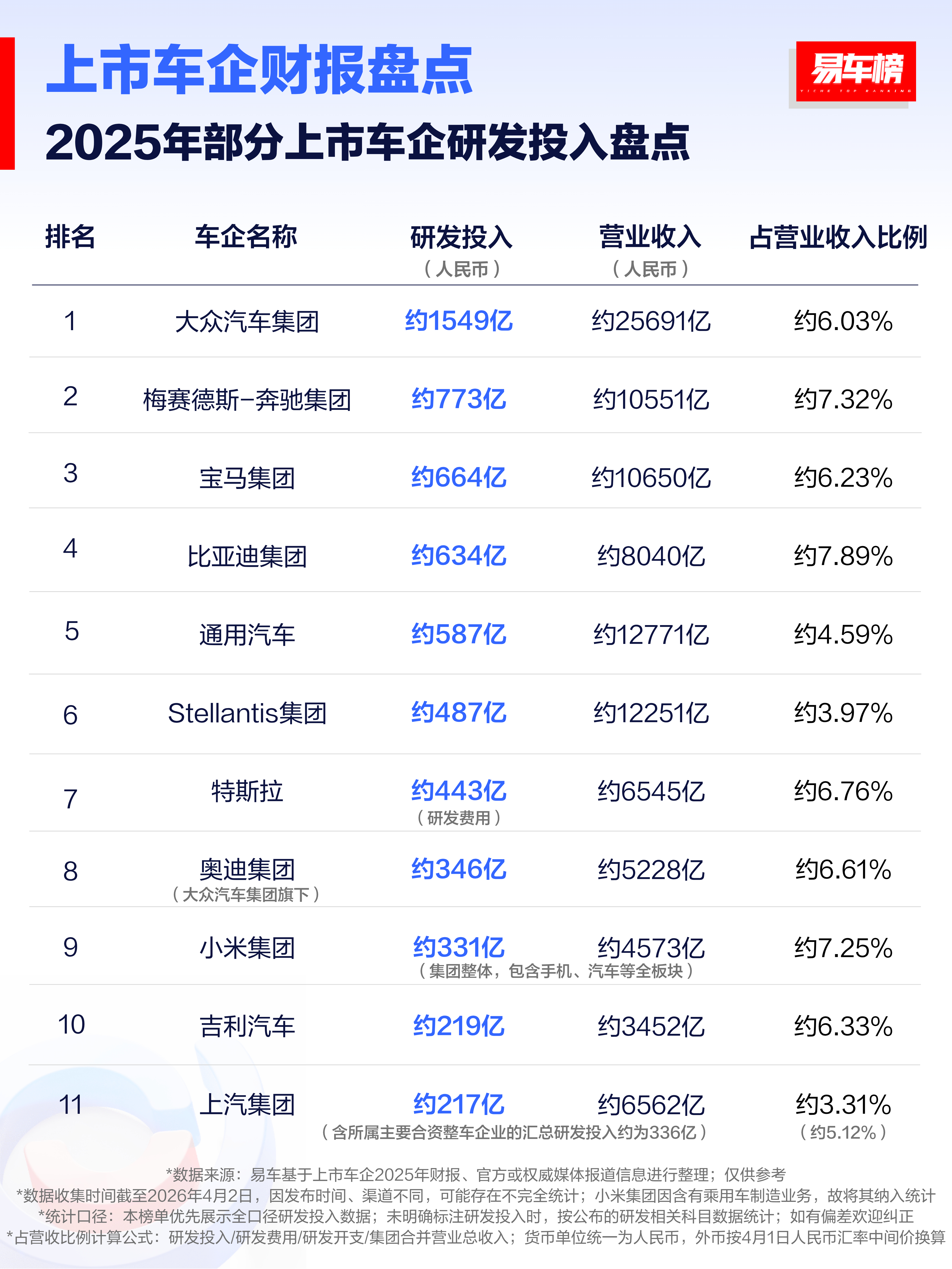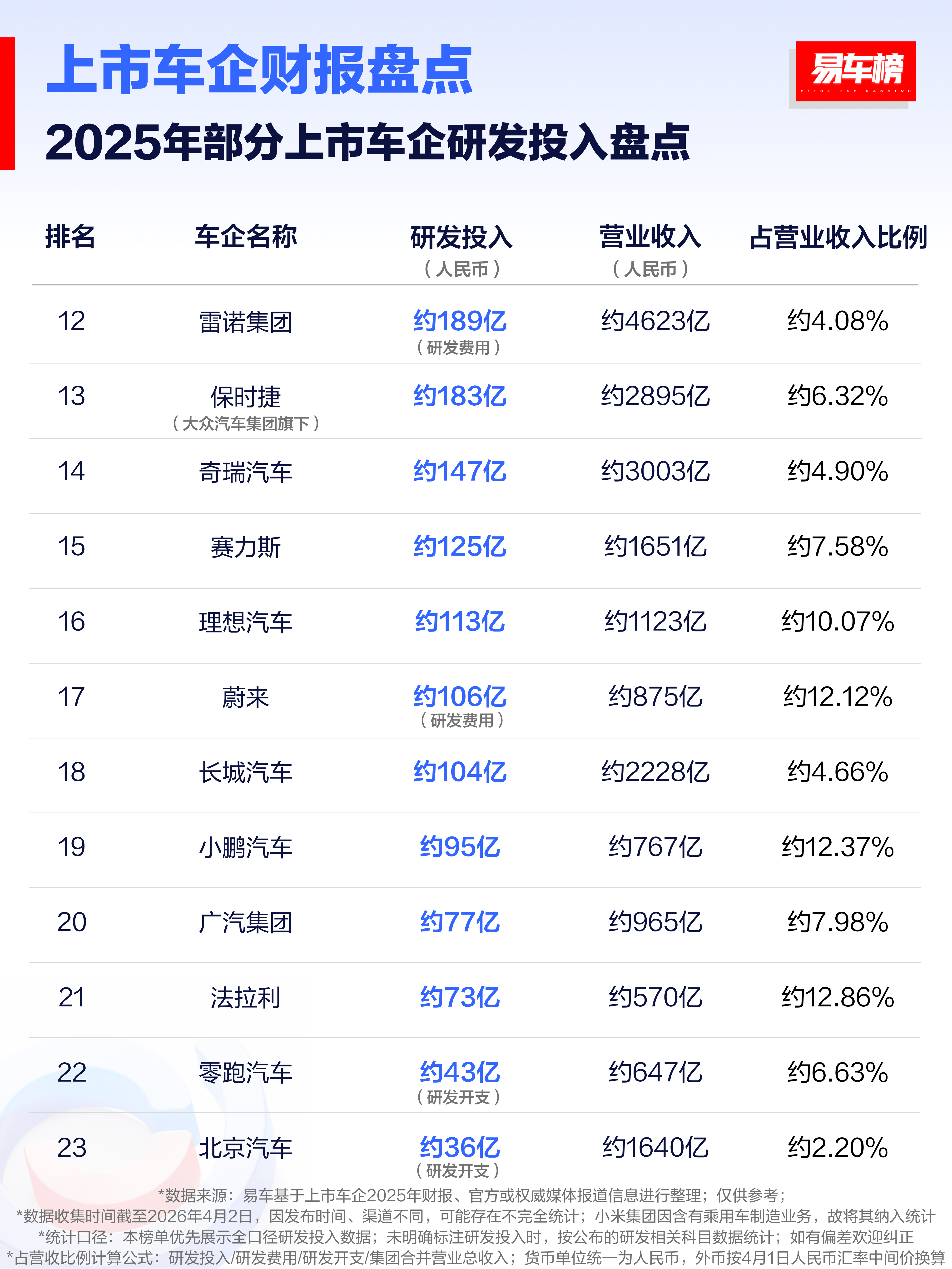 这就是汽车研发的投入确实研发投入很大,比亚迪依然是国产投入最大的车企!前三:大众,奔驰,宝马唯一看不懂是小米,怎么包括集团整体和手机费用,汽车也在内,想知道汽车到底花了多少钱?华为没有在内,如果华为在内,应该最多吧!有点东西智驾数码团大v聊车数码闲聊站