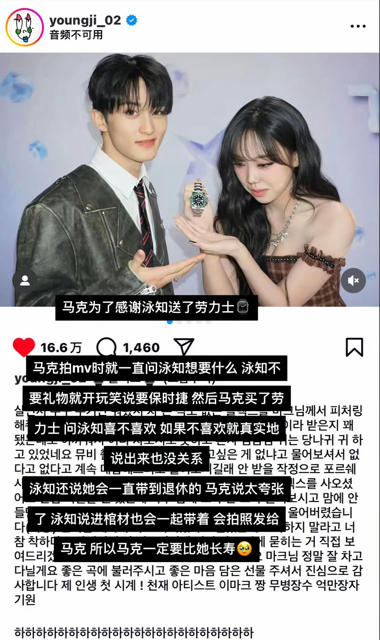 曝李马克签了李泳知公司 从送劳力士的互动到后续的签约传闻,更多是网友的猜测和爆料。李马克作为NCT的核心成员,合约归属一直备受关注;而李泳知的公司在rapper赛道成绩亮眼,若真的达成合作,对双方都是全新的尝试。在官方发声前,还是理性吃瓜,不信谣不传谣,静待后续进展
