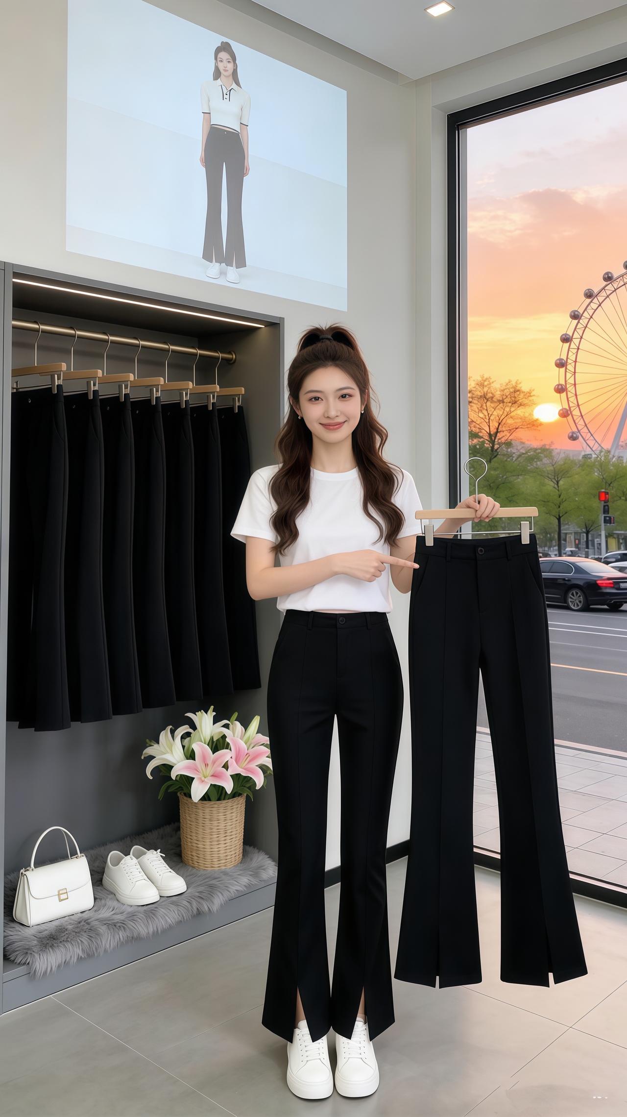 小个子喇叭裤高腰显瘦 洋气上档次