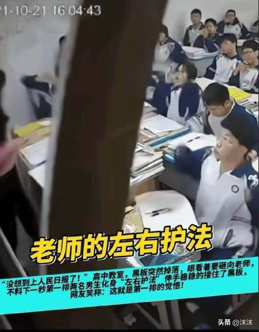 “没想到上人民日报、”高中教室突发意外,黑板砸向老师瞬间被接住! 这则暖心视频火遍全网,原本平静的课堂,因悬挂黑板突然松动下坠,瞬间陷入危急,讲台上的老师毫无防备,后排同学吓得抱头躲避,场面一度慌乱! 千钧一发之际,第一排两名男生几乎同时起身,一左一右稳稳托住下坠地黑板、待确认安全后,他们又小心将黑板放下,随后平静坐回座位,整套动作默契利落 。 不少网友感慨,这才是第一排的“正确打开方式”、以往总有人调侃前排是“挨揍区”“粉笔灰重灾区”,但这次事件让大家看到,前排亦是离老师最近、能第一时间伸出援手的“守护区” 。 其实类似的少年暖心举动不止一起,以前上海一名高中生街头施救心梗老人,同样获得人民日报点赞,这些孩子用行动证明,比起成绩排名,关键时刻的勇气与担当,才是更珍贵的品质 。 有网友留言:“这就是本能反应吧、第一排这觉悟比啥都重要,”在我看来,这份不假思索的挺身而出,正是刻在骨子里的善良与尊师之心 。 当下不少家长总纠结孩子的座位,为抢前排托关系送人情,却忽略真正影响孩子的,是内心的责任感与同理心、这两名男生的举动,给所有家长和学生上了生动的一课 。 要我说,与其盯着座位位置,不如多培养孩子的担当意识,毕竟善良和勇气,才是成长路上最靠谱的“加分项” 。 这事你怎么看? 图片来源于网络