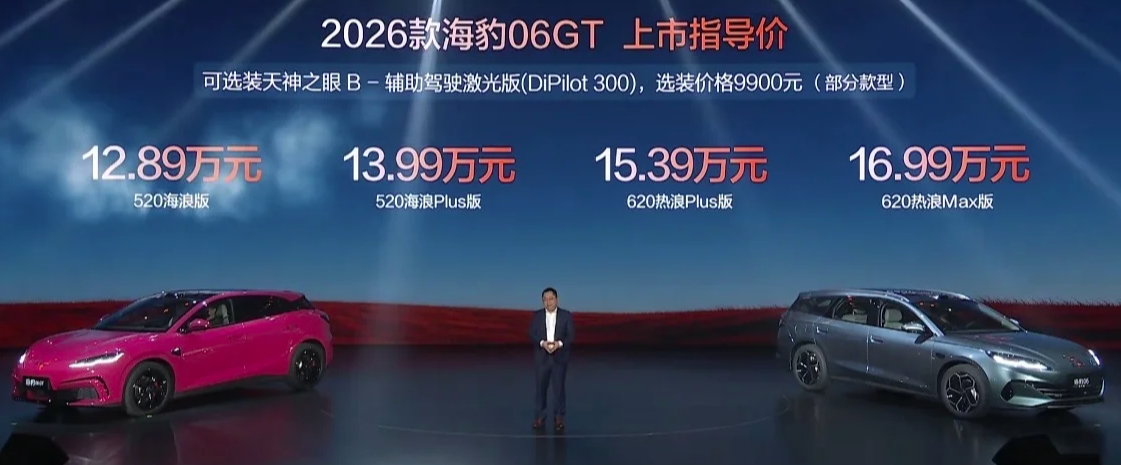双豹出击!比亚迪海豹06GT与06DM-i旅行版上市,11.19万-16.99万元。海豹06GT最高续航620km,闪充技术加持;旅行版纯电续航200/300km,亏电油耗3.15L,可选装激光雷达,强攻11万级新能源市场。比亚迪