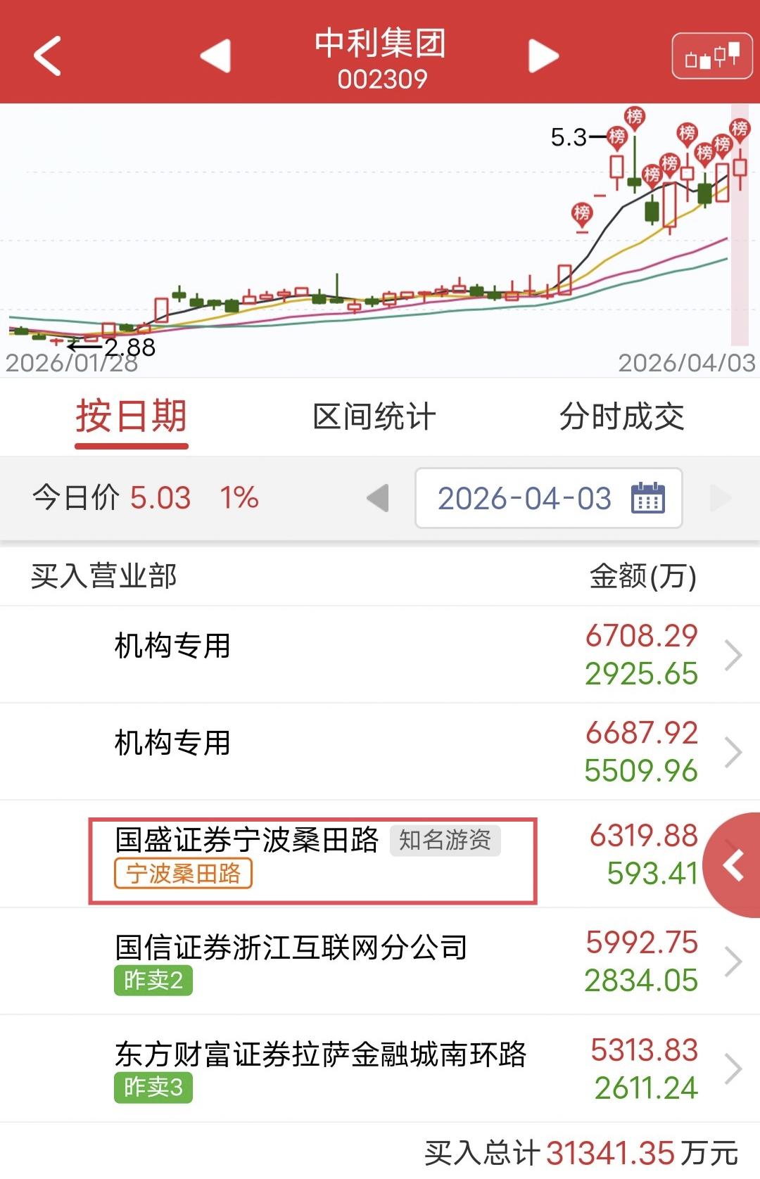 大曾子梭哈,桑田路助攻! 最近亏麻了的大曾子,今天又满仓梭哈中利集团了。 巧的是盘后龙虎榜显示,桑田路同车买入6300万。 不知道这只票节后会如何表现,大曾子能回血还是继续回撤?