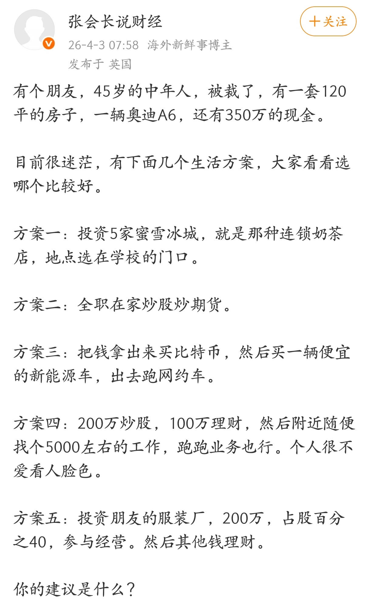 都是高手过招啊!第一回合:1300万的车子我送你了第二回合:好,把它卖成二手