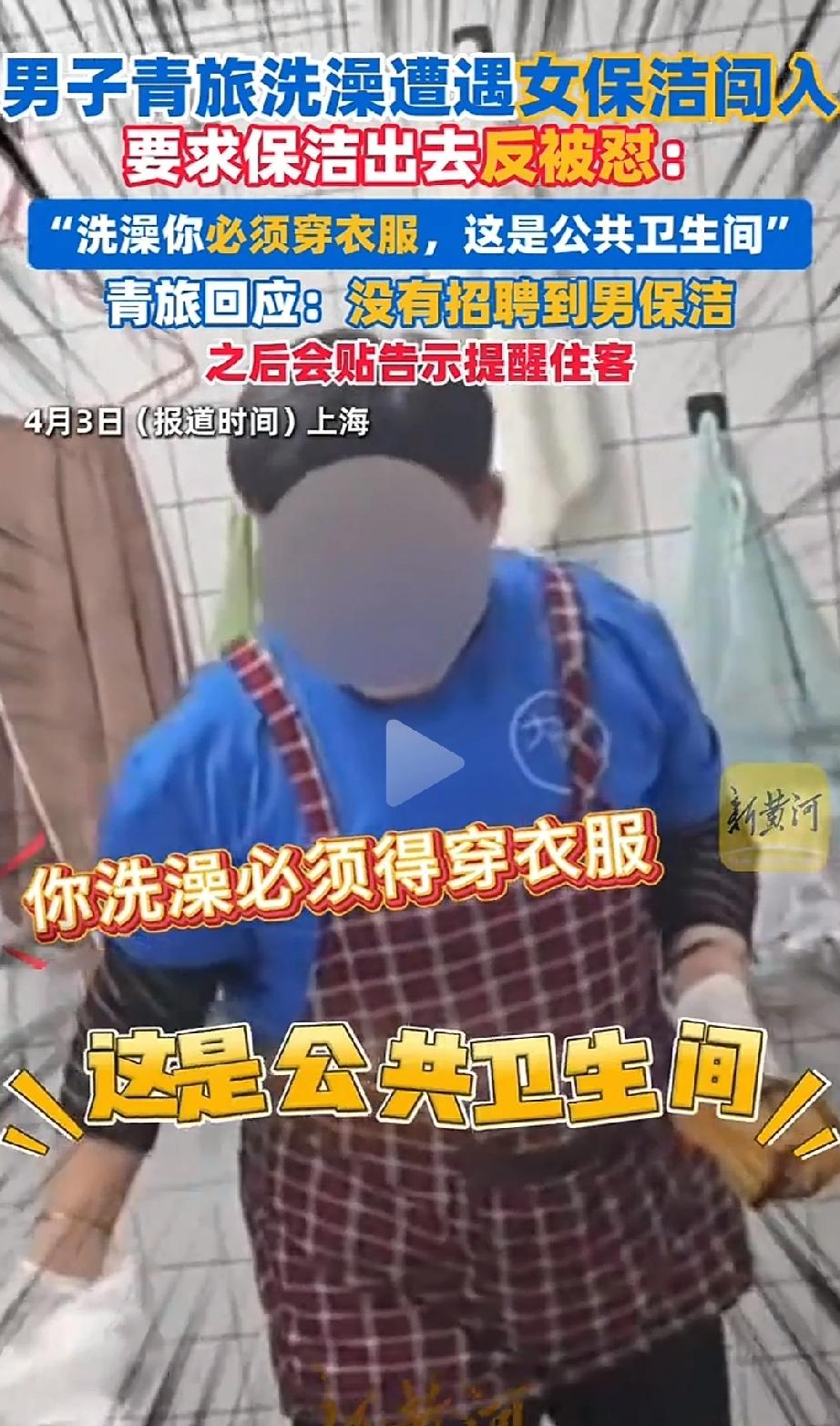 你敢信?上海,一个男子正在公共浴室的淋浴间里冲凉,结果一位女保洁阿姨直接推门就进来了!男子当场就懵了,赶紧让对方出去。万万没想到,保洁阿姨不但没道歉,反而理直气壮地说:“洗澡你必须穿衣服,这是公共卫生间!” 青旅的“公共男盥洗室”,里面有多个淋浴间。男子进去洗澡,正常关门、正常冲水。 女保洁大概是按照固定时间进来打扫卫生,她没有敲门、没有问一句“有人吗”,就直接推开了淋浴间的门。 男子赤身裸体,尴尬得不行,要求她出去。保洁阿姨的反应很“硬核”:洗澡你必须穿衣服,这是公共卫生间! 她觉得自己在干分内工作,这地方是公共卫生间,你一个大男人洗澡就该穿着衣服,凭什么让我走?还说自己没有错,投诉也没用。 青旅方面的解释就更让人无语了:他们说按规定,只要有人用淋浴间,保洁就不该进去。 可实际上阿姨还是进去了,说明管理根本不到位。而且因为招不到男保洁,只能让女保洁硬着头皮打扫男区域。 最后的解决办法居然是——贴告示,让客人“躲着保洁的时间洗澡”。也就是说,客人要主动配合保洁的排班,而不是青旅保证客人的隐私安全。 根据《民法典》第1032条、1033条,每个人都有隐私权,任何人不能随便进入别人的私密空间,也不能干扰别人的私密活动。 洗澡就是最典型的私密活动。女保洁没经过允许就推门,法律上已经侵犯了隐私。青旅作为提供住宿服务的商家,必须为员工的违规行为负责。 有网友说:“这种情况如果是女人在洗澡,男保洁员闯入的话,请所有的法官大人评价一下男保洁和女保洁如何处理。” 大家不妨闭上眼睛想一想:如果一个女生在女浴室洗澡,一个男保洁直接推门进去,还训她“洗澡你要穿衣服”,会发生什么? 恐怕旅行社会被骂到关门,男保洁当场就可能被开除,甚至还要吃官司。 可轮到男生洗澡被女保洁闯入了,青旅的回应觉得尴尬就穿底裤,或者换个时间! 隐私权是不分性别的。不管你是男是女,洗澡的时候被人突然推门,那种羞辱感和愤怒是一样的。 保洁阿姨那句“洗澡你要穿衣服”,更是荒诞到极点——穿着衣服怎么洗澡? 穿着衣服那叫淋雨,不叫淋浴!如果她觉得这是“公共卫生间”就可以随便进,那女厕所也是公共的,男保洁是不是也能随便推开女厕隔间的门? 更让人生气的是青旅的态度。他们没有反思为什么保洁会违规进入,没有道歉,没有处罚,而是轻飘飘地说“贴个告示”。 意思是:我们改不了,你们客人自己躲着点吧。这种“解决不了问题就解决提问题的人”的思维,说白了就是懒政和不尊重。 任何一家旅馆、青旅、酒店,哪怕再便宜,也不能拿客人的尊严当成本。招不到男保洁,可以招;排班不合理,可以调;保洁不遵守规矩,可以培训、可以处罚。 办法总比困难多,就怕你不想解决。贴一张告示容易,但丢掉的人心和口碑,再也贴不回来。