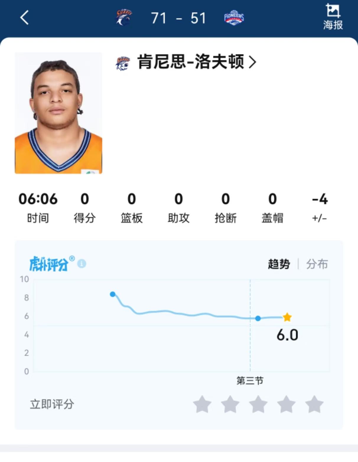 卢伟被打脸了!卢伟刚在发布会说完和洛夫顿虽然场上吵起来了,但场下关系很好不影响下面的比赛。 结果今天在上海对阵天津的比赛中,三节比赛都过去了洛夫顿只上场六分钟一分也没有得,显然受到了和卢伟关系的影响。 卢伟还是年轻觉得常规赛第一可以硬起来不靠大腿外援,等到了季后赛没有洛夫顿被包夹,其他人也没有空位机会就不好得分了。 也许看到古德温和白边都厉害,觉得没有洛夫顿照样能赢。