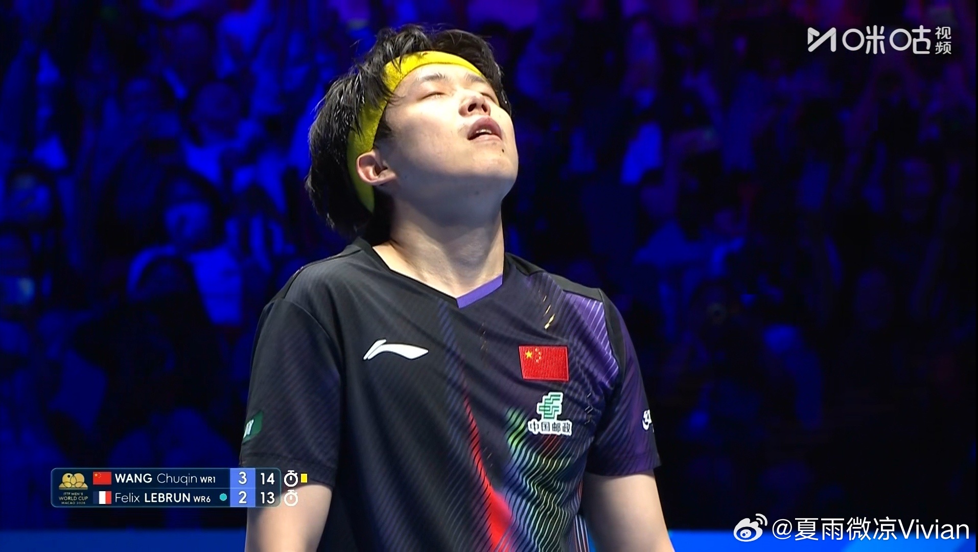 王楚钦4比2F勒布伦王楚钦晋级世界杯八强 🏓2026澳门乒乓球世界杯男单1/8决赛,王楚钦4比2战胜费利克斯·勒布伦王楚钦在大比分0-1、第二局2-7落后,最后以4-2【11-13,11-9,9-11,11-5,11-6,15-13】战胜勒布伦,真的很厉害,王楚钦是本次世界杯国乒男队最后一个独苗,高度责任心的他,顶着巨大压力比赛,赢下比赛后,双手高举,可我看到的是生理反应想吐的他,好心疼,也好为你骄傲。。