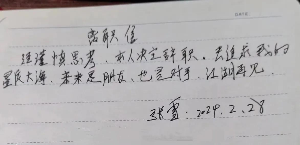 从凯越大门走出的那一刻起,张雪的传奇人生才刚刚开始。 2024年3月,这位一手将凯越从零做大的创始人“净身出户”,在事业巅峰之际毅然离去。那时所有人都想不通:凯越正值高光,他为什么要走? 故事还得从头说起。1987年,张雪出生在湖南怀化一个偏远山村。14岁那年,因家庭经济困难被迫中断初中学业,进入当地一家摩托车行做修车学徒。从那时起,他便在实践中自学机械原理与装配工艺,对摩托车的痴迷近乎执着。2006年,他进入车队培训并参加全国越野摩托车锦标赛,19岁时冒雨骑行100多公里死缠烂打地追逐湖南卫视采访车,只为被车队发现。2013年,他怀揣2万元只身赶赴重庆,靠着在摩托车论坛发改装帖、卖车一点一滴积累。2017年,他与合伙人共同创立凯越机车,从年销800台做到年销3万台、营收数亿,带领凯越车队在达喀尔拉力赛中成为历史上首支完赛的中国摩托车队。 然而,就在凯越渐入佳境之时,分歧出现了。张雪提出要做国内最顶尖的发动机——那是刻在他骨子里的执念。可这一要求,并没有得到公司高层所有人的认可。第二天早上收到的回复,只有两个字:“不做”。 那一刻,他没有犹豫,立刻提出辞职。那张用不太美观的字体写成的辞职信上,字字铿锵: “经谨慎思考,本人决定辞职。去追求我的星辰大海,未来是朋友,也是对手,江湖再见。” 多么豪迈的气势,多么坚定的决心!这就是那种一旦认定了某件事便绝不回头的“偏执狂”。既然这里实现不了造车的执念,他就要走自己该走的路。 随后,张雪在朋友圈留下了最后一句体面:“其实我还是很自私,我只想着自己的梦想,没有照顾投资人的收益,可能结果已经确定了。但是我总归要对我的人生负责,如果都不爱自己了,何谈爱人、爱世界!”辞职那天,他拿着心爱的头盔头也不回,走出了大楼。