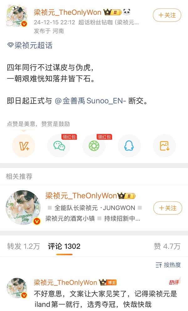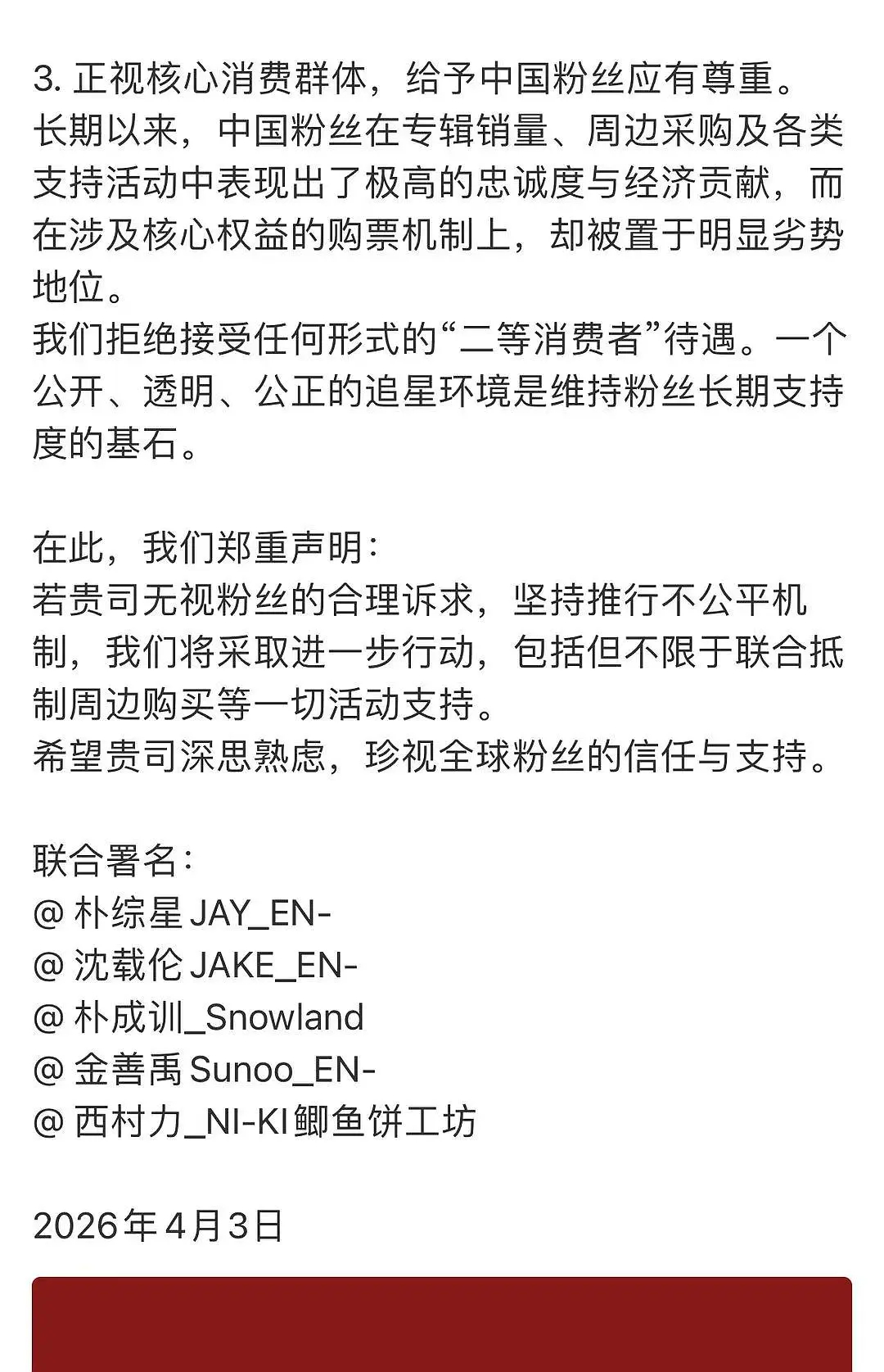 如何看待ENHYPEN五大吧联合维权唯独孤立梁祯元大吧五大吧:没有资格替正主原谅(24年12月临吧退群)四年同行不过谋皮与伪虎,一朝艰难恍知落井皆下石