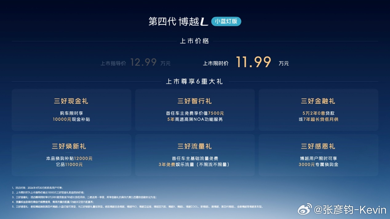第四代吉利博越L小蓝灯版上市,限时价11.99万元。