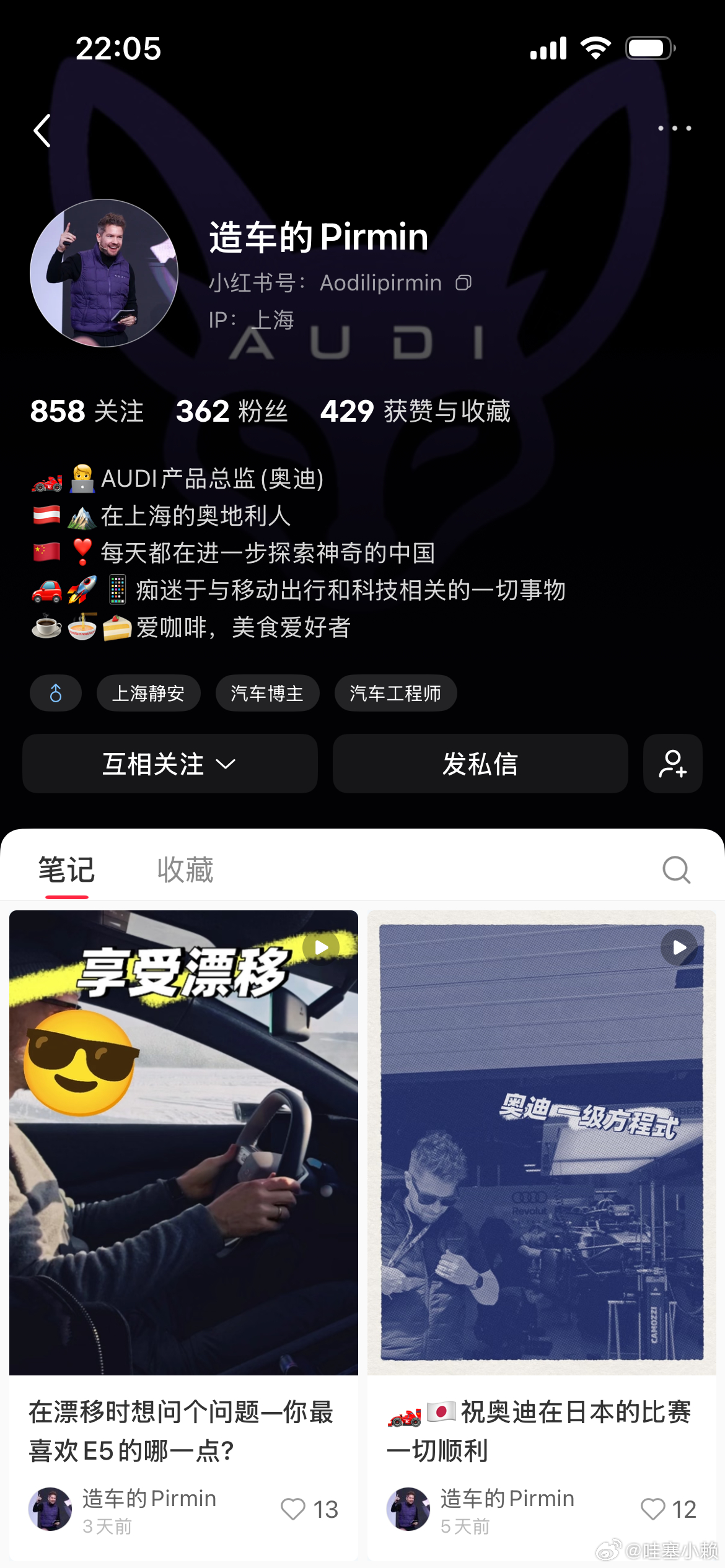 和奥迪AUDI的产品总监Pirmin先生互关了一下,感觉一定很绅士!找机会一定要