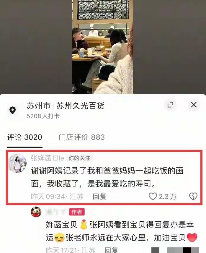 泪目!张雪峰女儿张姩菡时隔几日再度发声,留言内容惹得人直掉眼泪。 张姩菡刷到网友之前发的一张照片,照片中是张雪峰老师带着妻女在一家日料店就餐。这家店看起来很普通,没有奢华的装修,桌子上放着碗碟,张雪峰托着下巴温柔的跟女儿说话。 她在该网友下留言评论:谢谢叔叔,这张照片我会好好收藏,那天我们吃的是我最喜欢的寿司,爸爸说等我放假后就带我去迪士尼。 言语中没有什么让人落泪的词语,只是简单的回复留言,却透着孩子对爸爸的思念,字字戳心窝子。 一个才11岁的孩子,本应该是在父亲的臂膀下保护下无忧无虑的成长,如今却在互联网上刷对父亲的回忆,真的是太心痛了。 看到张姩菡的留言,网友也纷纷晒出他们与张雪峰的偶遇。有的画面是他带着张姩菡抓娃娃,就是普通人的生活很接地气。有的画面是张雪峰在一家店里吃饺子,如今这样的画面再也看不到了。 都过去一段时间了,为什么人们还在用不同的方式来回忆,其实懂的人都懂。 江苏6天春假今天是第三天了,明天清明假期也开始了,如果张老师没有离开肯定会带着女儿出去游玩,说不定还能在迪士尼偶遇呢,可是...... 原来,她也和我们一样在网上东拼西凑的找他的爸爸。