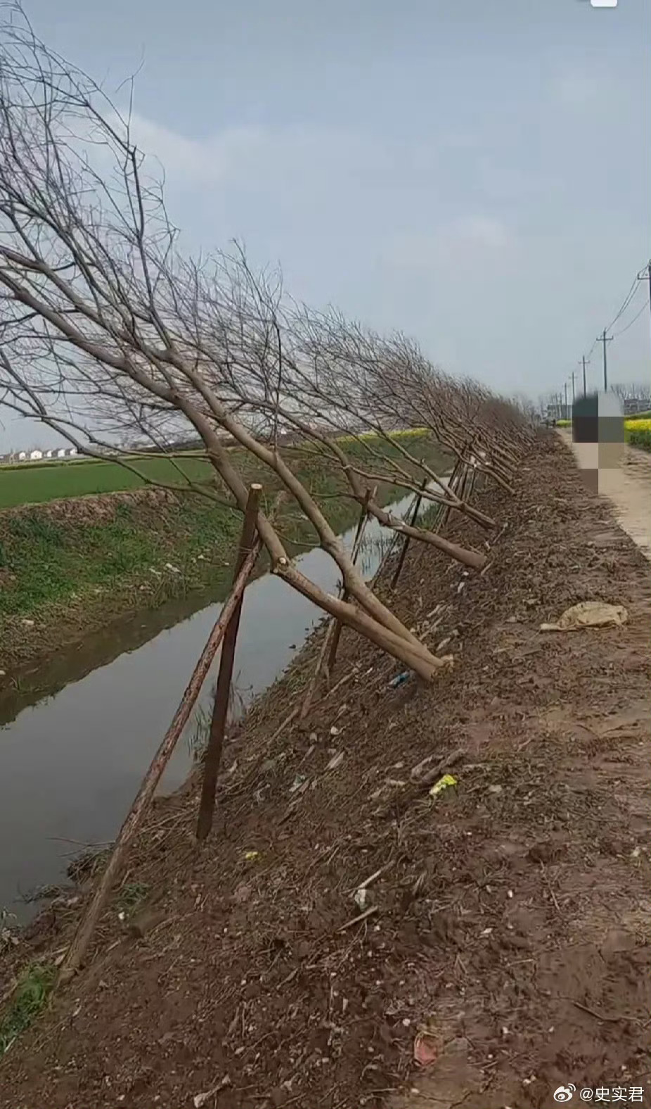 惊呆了!!!还是第一次见树斜着种的!!!大家觉得这种树能活吗