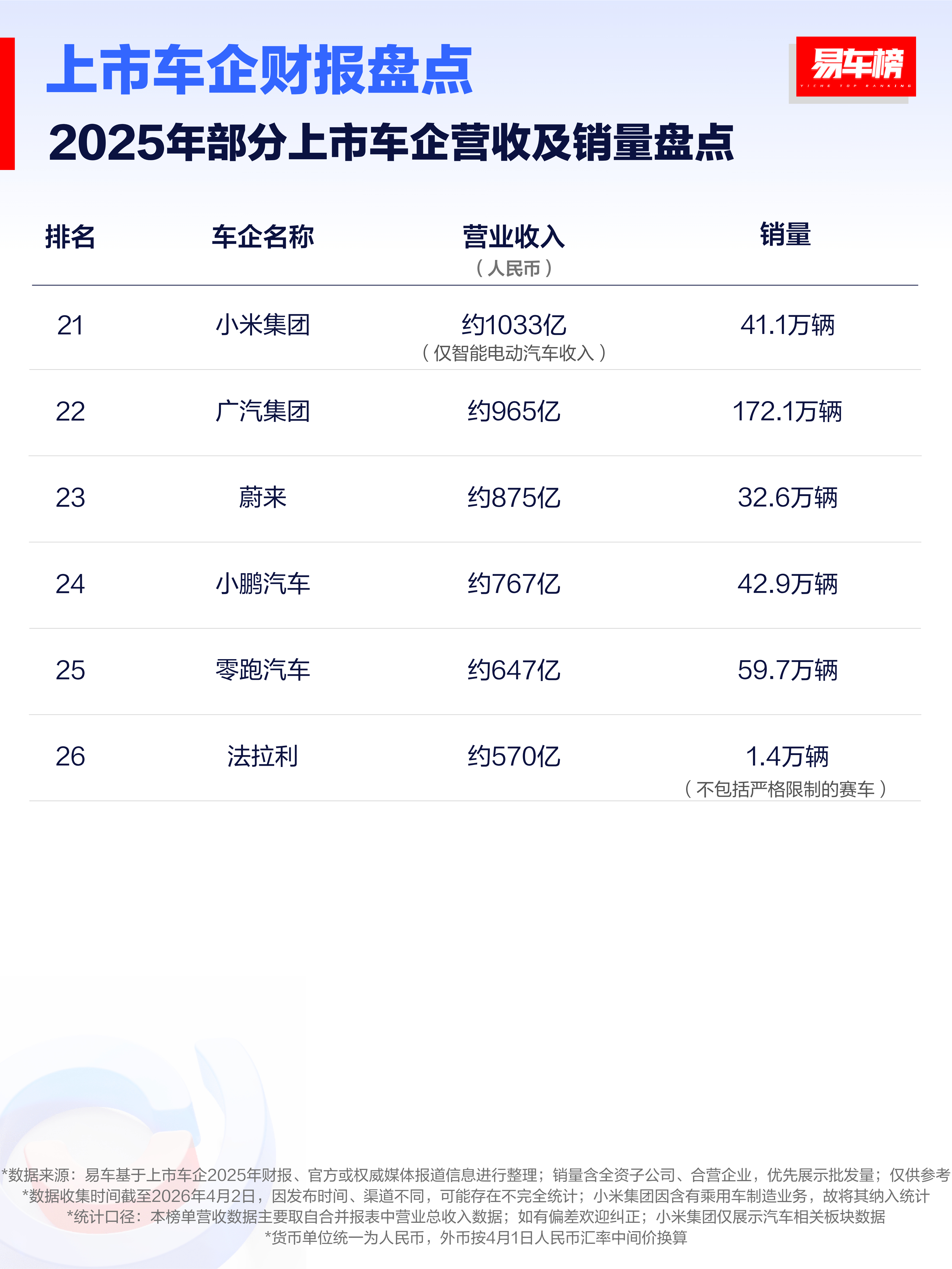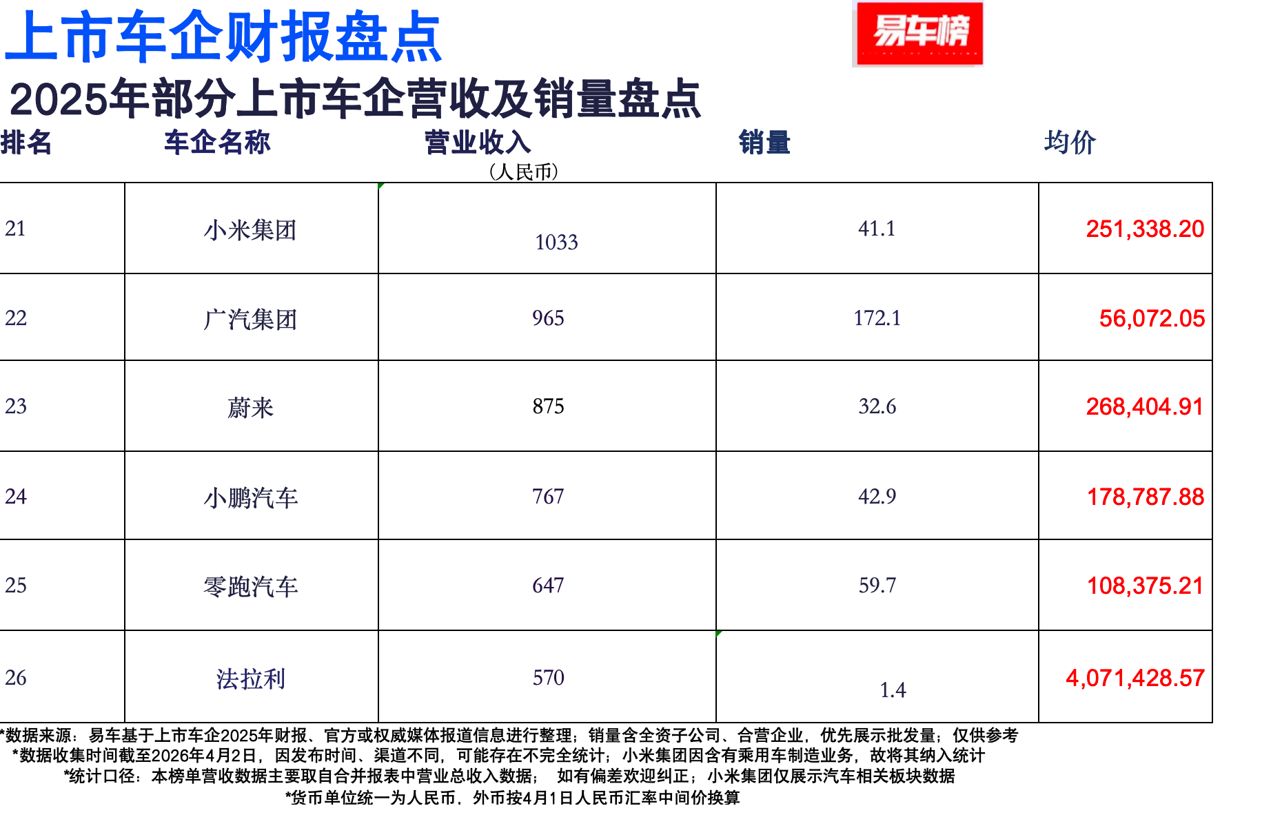 刚看到易车发的2025年部分上市车企营收及销量盘点数据,这个数据估计只能姑且观之