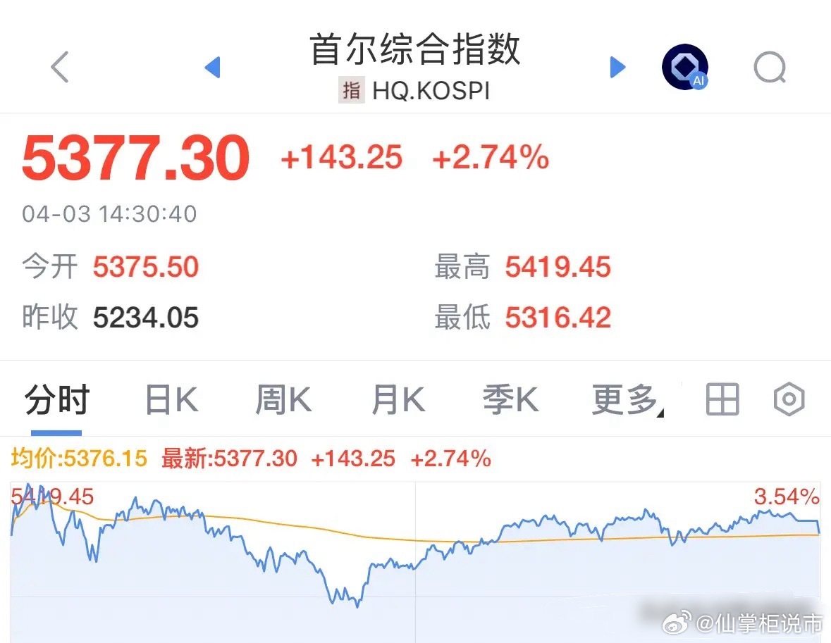 韩国股市又大涨?强烈谴责韩国股市破坏亚洲金融稳定下跌的秩序:昨天韩国股市大跌,有的财经媒体立即报道;4月3日今天立马大涨2.74%,没媒体关注了。不像有的股市,昨天跌了今天还是下跌,却依然是牛市!据媒体报道,3月开户的散户大增了几百万元,散户冲进来抄底,没想到机构撤退了!这就有点不厚道了。不是说牛市吗?都3800点了还跑啥?跑啥?