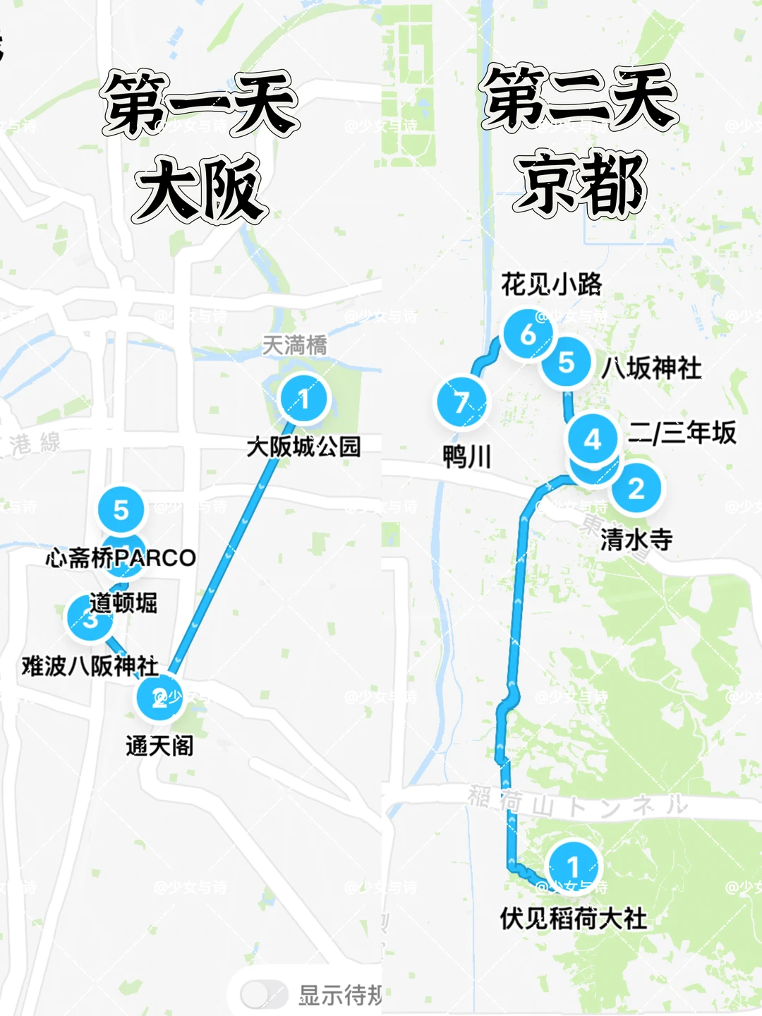 4️⃣住宿:大阪住心斋桥/难波(购物方便),京都住四条河源町(近景点)。