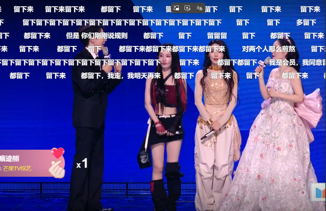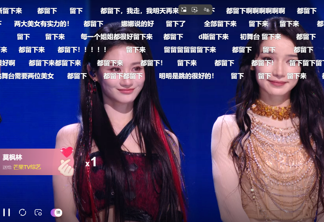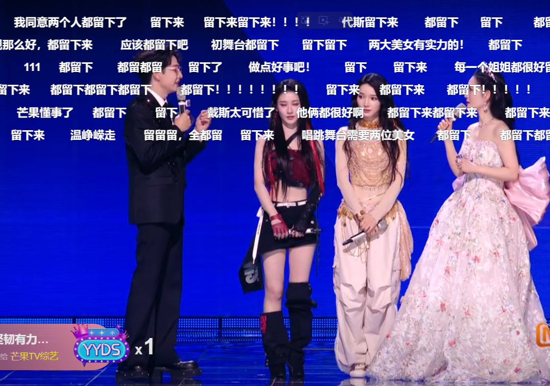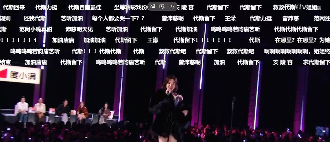 浪姐直播弹幕都是求代斯留下只能说芒果的直播弹幕就是观众最大的心声,代斯值得,终于留下来了,全靠观众的努力 代斯浪姐弹幕