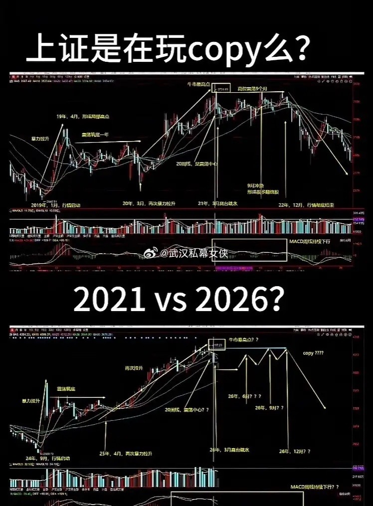 • 都是涨完一波后,高位开始跌2021年:大盘冲到 3731点 后掉头往下2026年:大盘冲到 4197点 后开始回调
