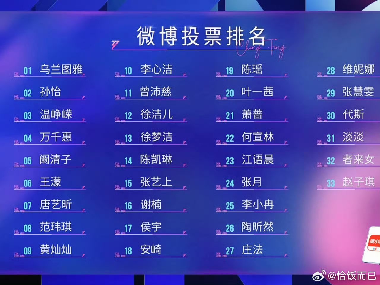 浪姐排名浪姐今晚排名,今晚浪姐非常听劝的把规则改了,取消淘汰人选