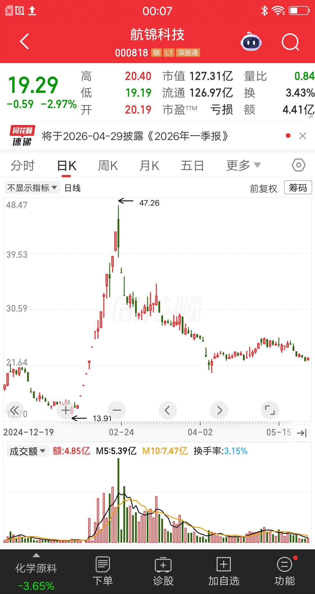 一位福建的散户,拿了一年多的票,今天因涉嫌信息披露违法违规被立案调查了,他现在想销户的心都有了。 去年2月份航锦科技13天10板,炒作的是DeepSeek大模型算力 + 英伟达合作 + 军工芯片 + 算力合同落地,叠加游资+机构+融资盘合力爆炒。 他在股价回落企稳的时候,以30元的价格买了6万多块。后面股价慢慢阴跌,他才发现自己被套住了。后面股价多次反弹,可是都没有回本过。 死扛一年多亏了快40个点,如今又被立案了,换做是谁也受不了呀。他的心情糟透了,本来计划好假期好好散心的,现在也没心情去了。 他发文求助股友的建议,有人劝他割了吧,一看就知道是新手菜鸟。先用小钱把水平练好,再投入更多的钱,早晚能赚回来的。 这位福建的散户,他的遭遇告诉我们,一定别去追爆炒过的票。 大家玩吸取教训呀!