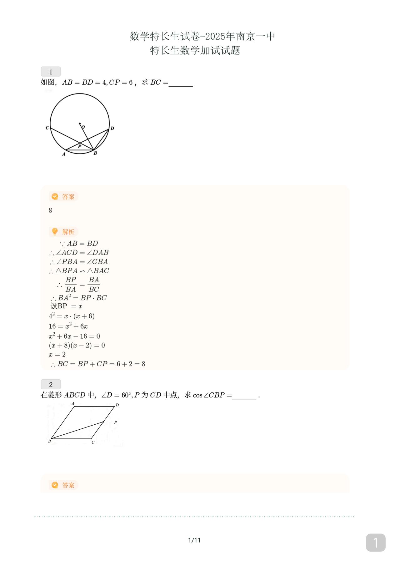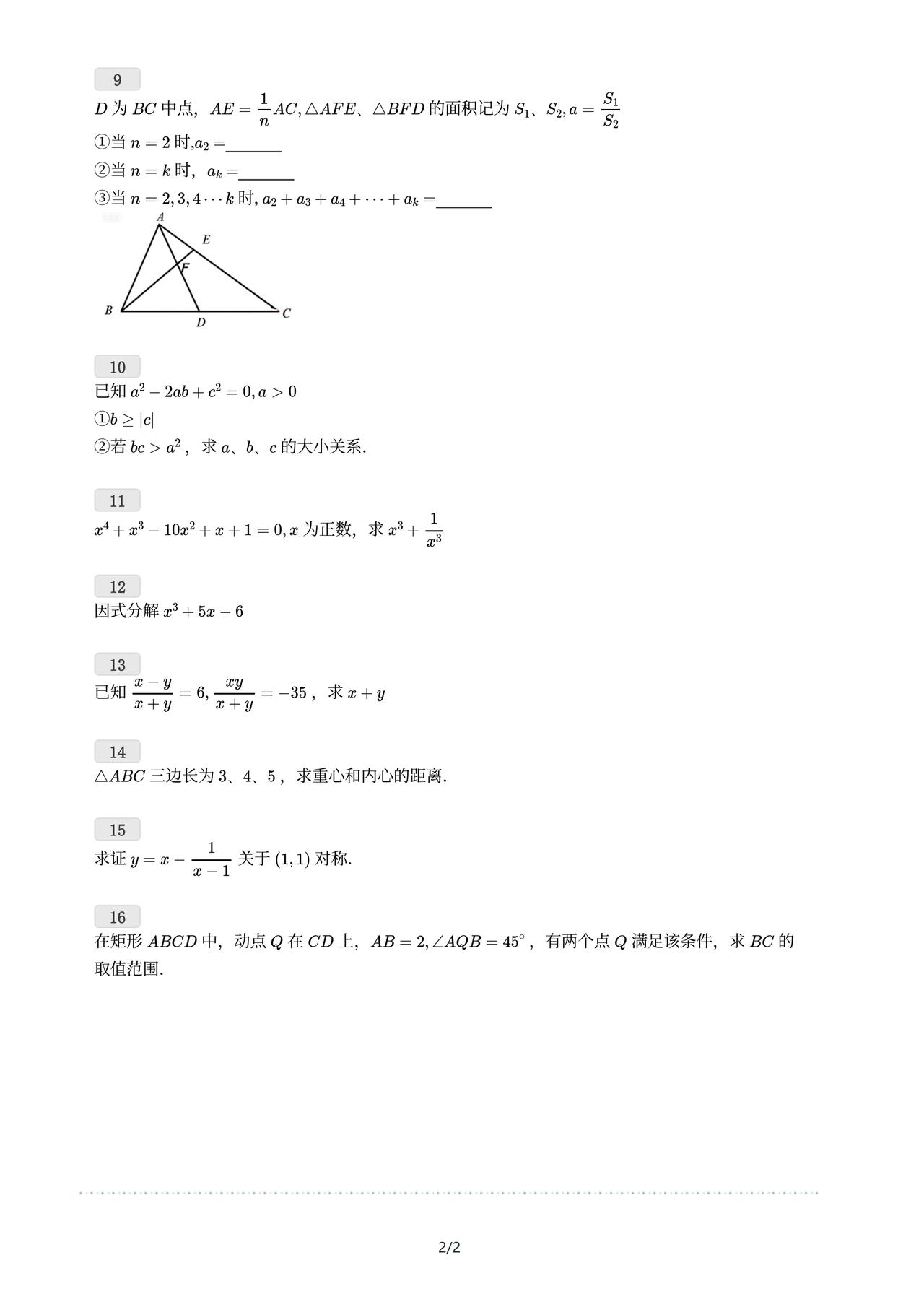 数学特长生加试卷 我所分享必属精品 必有答案 必合你所需