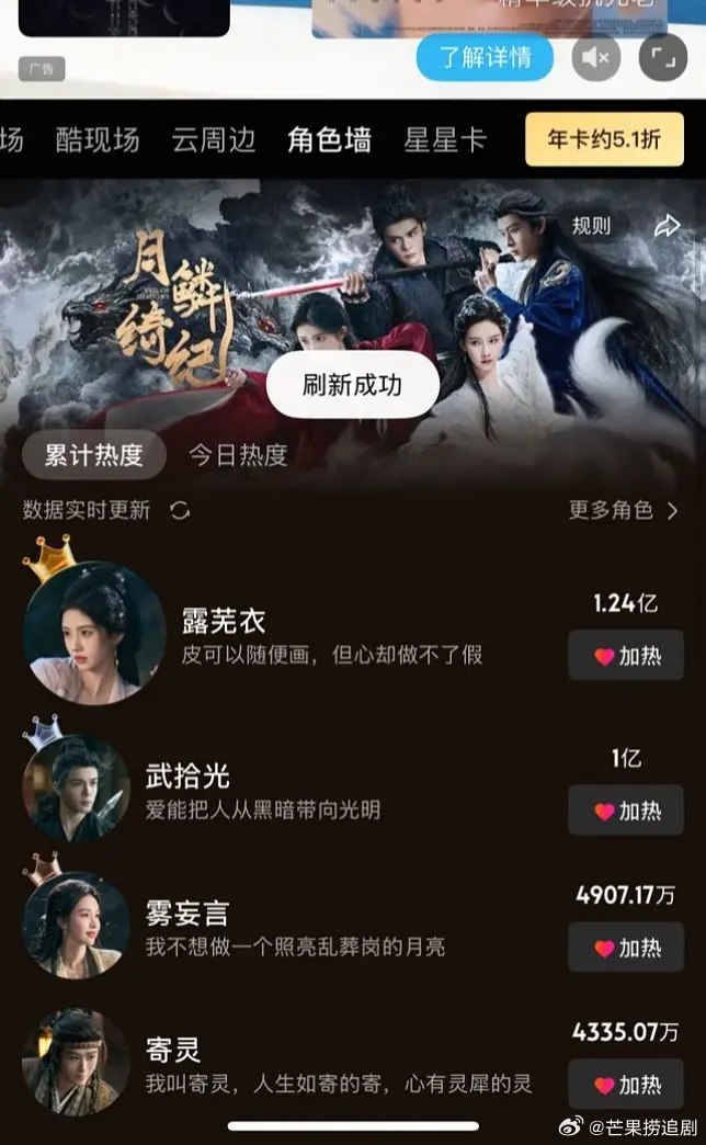 鞠婧祎、曾舜晞分别拿下优酷首位破亿角色、破亿男性角色。她俩给我的感觉是她还在吸粉,出道十几年还在上升期挺罕见的,而且空窗期这么久的情况下还有源源不断的新粉,固粉能力也很强,粉丝愿意托举粘性也超高,真实生来就是红的命啊!!!