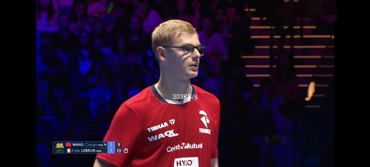 刚刚结束了一场国际乒联澳门世界杯男单1/8决赛,去年世乒赛男单冠军、世界排名第一的王楚钦,在1-2落后的不利情况下,连扳3局,4-2战胜2026年WTT重庆冠军赛男单冠军、世界排名第6的法国19岁新星费利克斯.勒布伦,晋级男单8强,收获双方最近交手2连胜。 比分:11-13,11-9,9-11,11-5,11-6, 15-13。 王楚钦下一轮对战斯洛文尼亚选手达科,后者4-1淘汰奥恰洛夫。