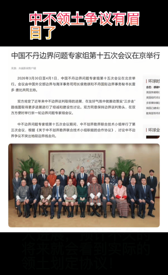 中不领土争端有重大进展! 2026年3月30日—4月1日,中不第15次边界专家组会议在北京举行,双方落实“三步走”路线图,联合技术小组第三次会议重点讨论争议不突出地段边界线走向,同意保持谈判势头、适时召开下一轮会议,预示着中不边境争端可能取得实质性进展! 中不边界问题历史悠久,涉及两国约600公里的未划定边界线,长期以来,受地缘政治复杂性和历史因素影响,谈判进程虽稳步推进,但始终面临挑战。 自2012年中不启动边界谈判以来,双方已建立多层级对话机制,逐步积累互信,特别是近年来提出的“三步走”路线图,即先易后难、分阶段推进,成为破解谈判僵局的关键策略。 本次会议上,联合技术小组将焦点转向“争议不突出地段”,通过实地勘测、数据共享和专家论证,明确了部分地段的边界走向,这为后续谈判奠定了坚实基础。 此次会议的突破性意义体现在多个层面 双方摒弃意识形态对立,以技术手段化解分歧,展现了“以事实为依据、以规则为导向”的谈判智慧。 自第14次专家组会议以来,联合技术小组已建立高效的工作流程,通过定期会晤与专项研讨,确保谈判持续深入。 更重要的是,中不双方均释放出强烈政治意愿,同意“保持谈判势头,适时召开下一轮会议”,这意味着边界问题的解决已从“可能”转向“可期”。 从区域视角看,中不边界谈判的加速推进具有深远影响,作为南亚地区重要的邻国,中不关系的稳定直接关乎区域安全架构,边界问题的妥善解决,不仅能消除潜在冲突点,更将为两国深化合作创造有利条件。 当前,中不双方在经贸、人文、环保等领域的合作需求日益增长,边界问题的突破有望成为双边关系升级的催化剂。 此外,中不谈判的成功实践也为国际社会提供了和平解决领土争端的范例,特别是在地缘竞争加剧的背景下,其示范意义尤为突出。 值得注意的是,中不边界谈判的进展亦与地区格局变化密切相关,随着中国与南亚国家合作的深化,以及不丹在对外交往中日益强调战略自主,双方均意识到通过对话解决问题符合共同利益。 印度作为不丹外交政策的重要影响因素,其态度转变同样不容忽视。 近年来,中印在边界问题上的沟通机制逐步完善,这为中不谈判创造了更为宽松的外部环境。 中不边界谈判的新进展,不仅是一场外交胜利,更是对和平解决国际争端理念的生动诠释。 在零和博弈思维盛行的当下,中不双方通过“三步走”策略展现了解决复杂问题的耐心与智慧,争议较小的边界地段率先突破,既避免了因局部分歧影响全局,又为后续谈判积累了互信与经验。 这种“先易后难、循序渐进”的路径选择,值得其他存在领土争端的国家借鉴。 从更深层次看,中不边界问题的解决进程折射出国际关系民主化的趋势。 不丹作为小国,在谈判中展现出与其体量不相称的外交主动性,体现了国家无论大小,均可通过平等对话维护自身利益。 中国则始终秉持“亲诚惠容”的周边外交政策,以合作而非对抗的姿态推动问题解决,这种双向奔赴的诚意,为谈判注入了持久动力。 未来,中不边界问题的最终解决仍需跨越多重障碍,争议较大地段的谈判将更为复杂,涉及历史、法律、地缘等多重因素。 但第15次专家组会议的成功表明,只要双方坚持政治互信、规则导向与务实合作,边界问题终将成为历史。 当中不边界线最终划定之时,它不仅是一条地理分界线,更将是一条连接两国的和平纽带与发展通途。 期待中不双方以此次会议为起点,继续以对话破解难题,以合作开创未来,为构建人类命运共同体贡献“中不智慧”。