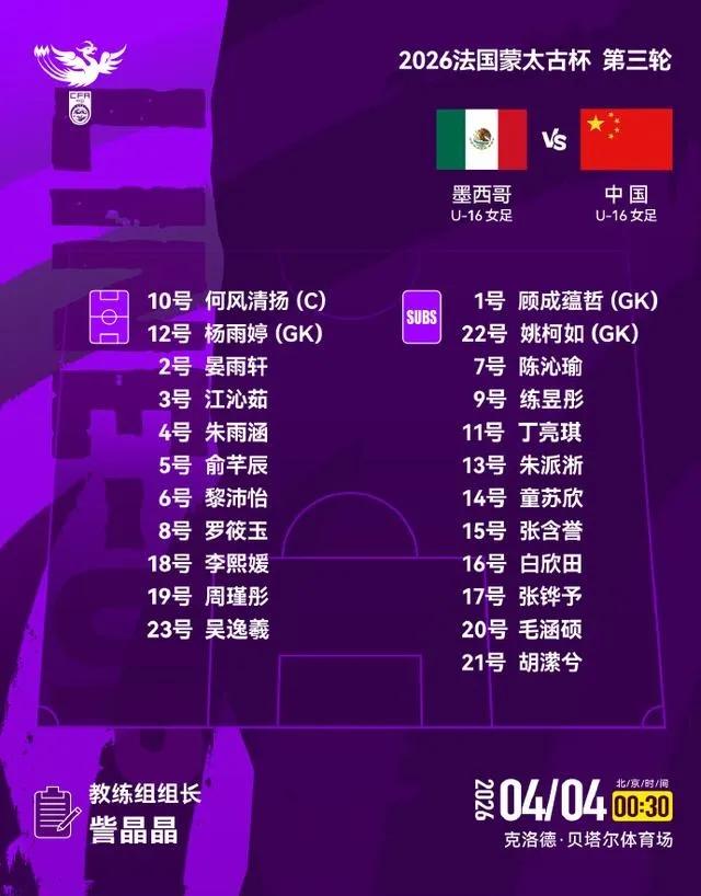 十人中国U16女足1-1墨西哥,小组不败晋级决赛再战日本 这群15岁的姑娘,在法国被红牌“欺负”后,用最硬气的方式把东道主踢沉默。 裁判第35分钟那张直接红牌,让所有人心里一凉。U16女足对阵墨西哥,姑娘们不得不十人迎战超过50分钟。就在几天前,中国队2-1击败法国队后,东道主球员围堵裁判、拒绝握手的一幕还历历在目,被批“输不起”。 但这次,中国小姑娘选择了用足球说话。周瑾彤在第27分钟冷静推射破门,这位连续两场进球的前锋成了关键先生。少一人后,全队阵型回收,门将高接低挡,硬生生在墨西哥队的围攻下,将1-1的比分守到了终场。 2胜1平,小组不败晋级蒙太古杯决赛。去年的决赛,她们0-1惜败给日本队。命运让她们再次相遇,是复仇登顶,还是再次饮恨? 真正的体育精神,是在逆境中战斗到底,而非输球后的拒绝握手。这张红牌是否过严?这支平均年龄15岁的队伍,配得上多少赞美?足球