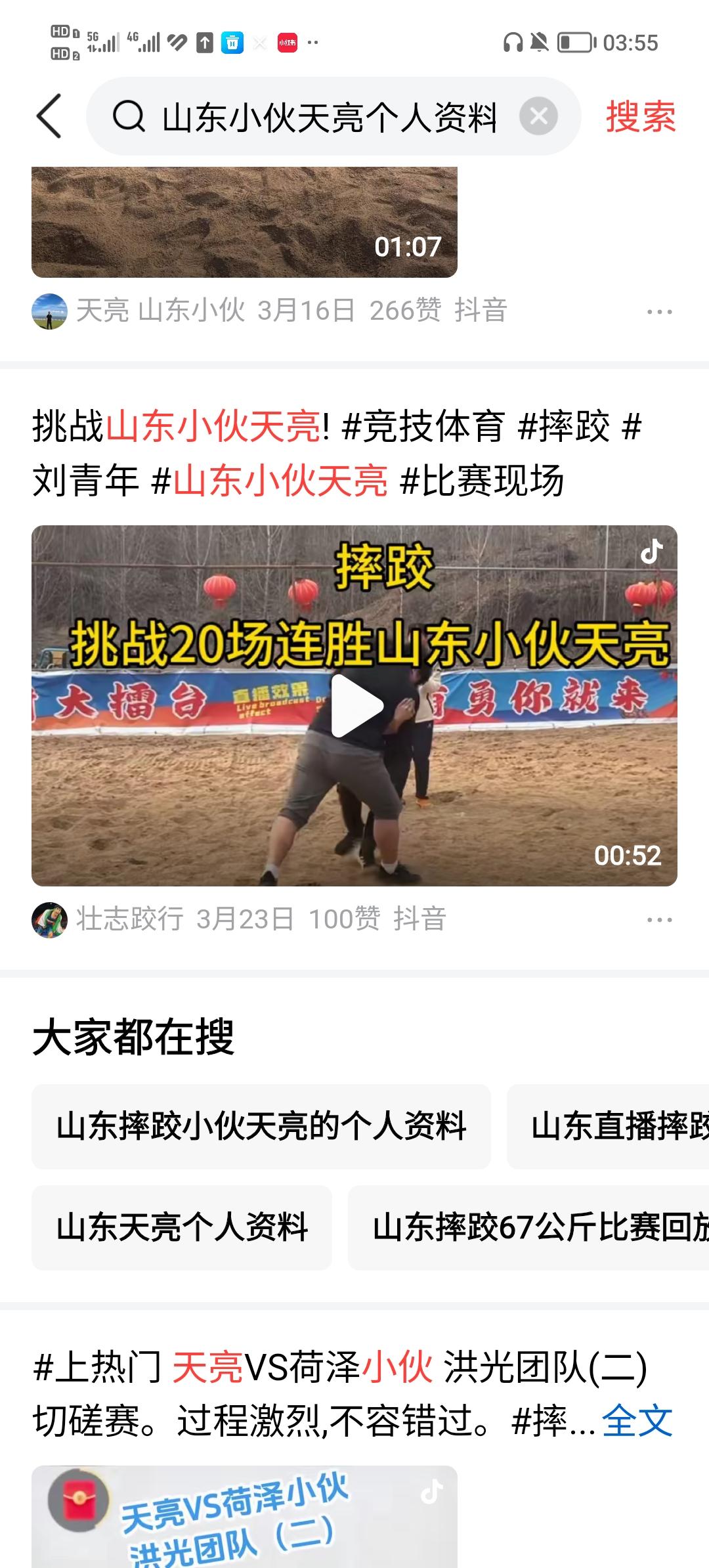今天的民间跤场肯定非常的精彩,跤场上的实力选手王涛要来到山东五莲县六青年摔跤场,和跤场上的高手天亮,进行切磋交流。天亮这个跤场高手,被人所熟知,是在河南民间跤场上,一套车轮战,连胜21人,他在跤场上也是点到为止,展现了良好的个人品质。 民间跤场上,同样藏龙卧虎,比赛规则也不复杂,胜负之间看的很清楚,融娱乐和健身于一起,非常好。 高手天亮,在跤场迎战各路好汉,不限级别,不限体重。天亮对战的高手中:开封安保、菏泽小伙都表现了很好的技艺,尤其是同山西高手田成平(音)两个人的交流,都展示了很高的技艺与良好品质。 期待今天和王涛两个人的交流。