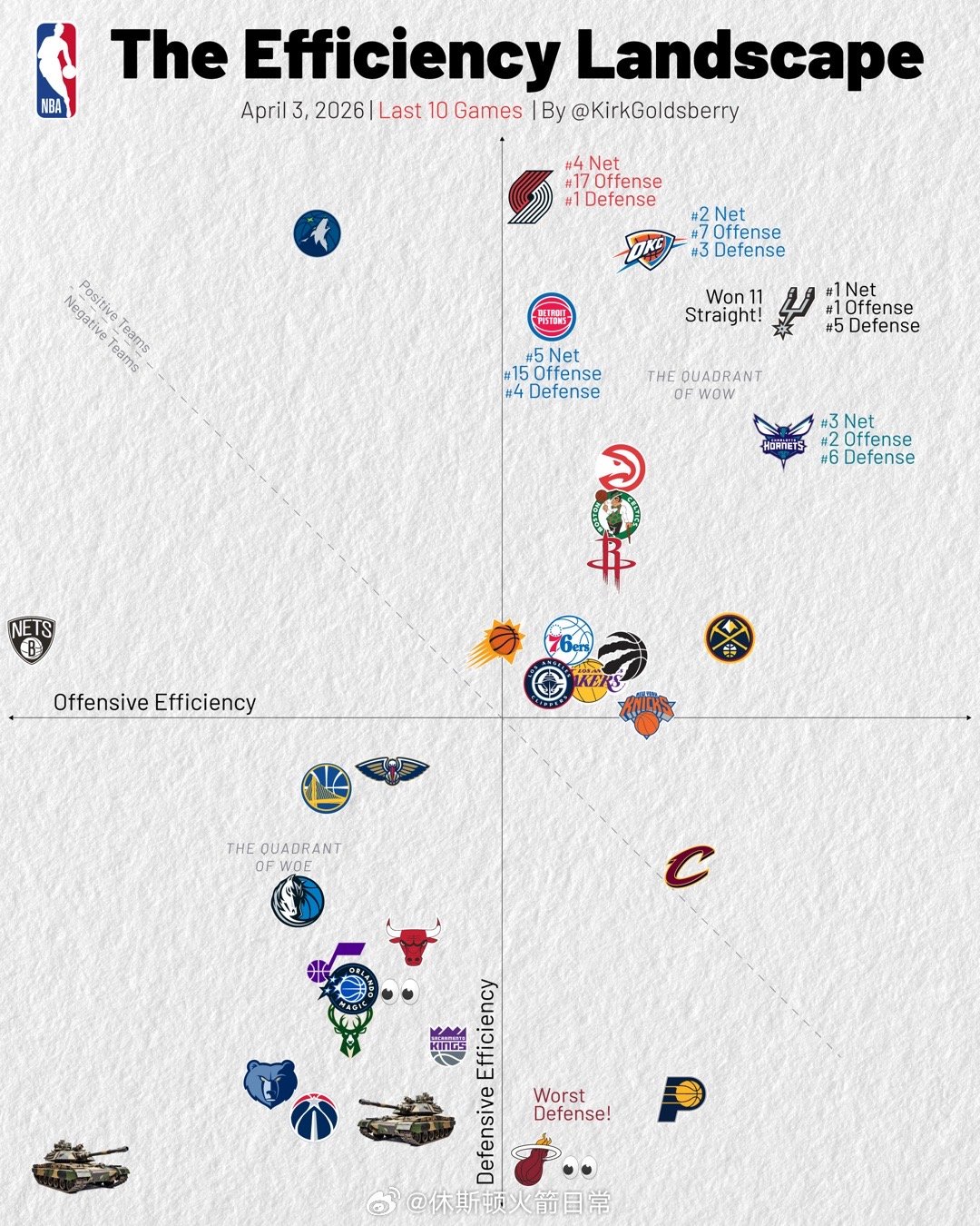 哈登加盟至今和阿伦、莫布里组成的双塔同场87分钟,进攻效率122.1,防守效率9