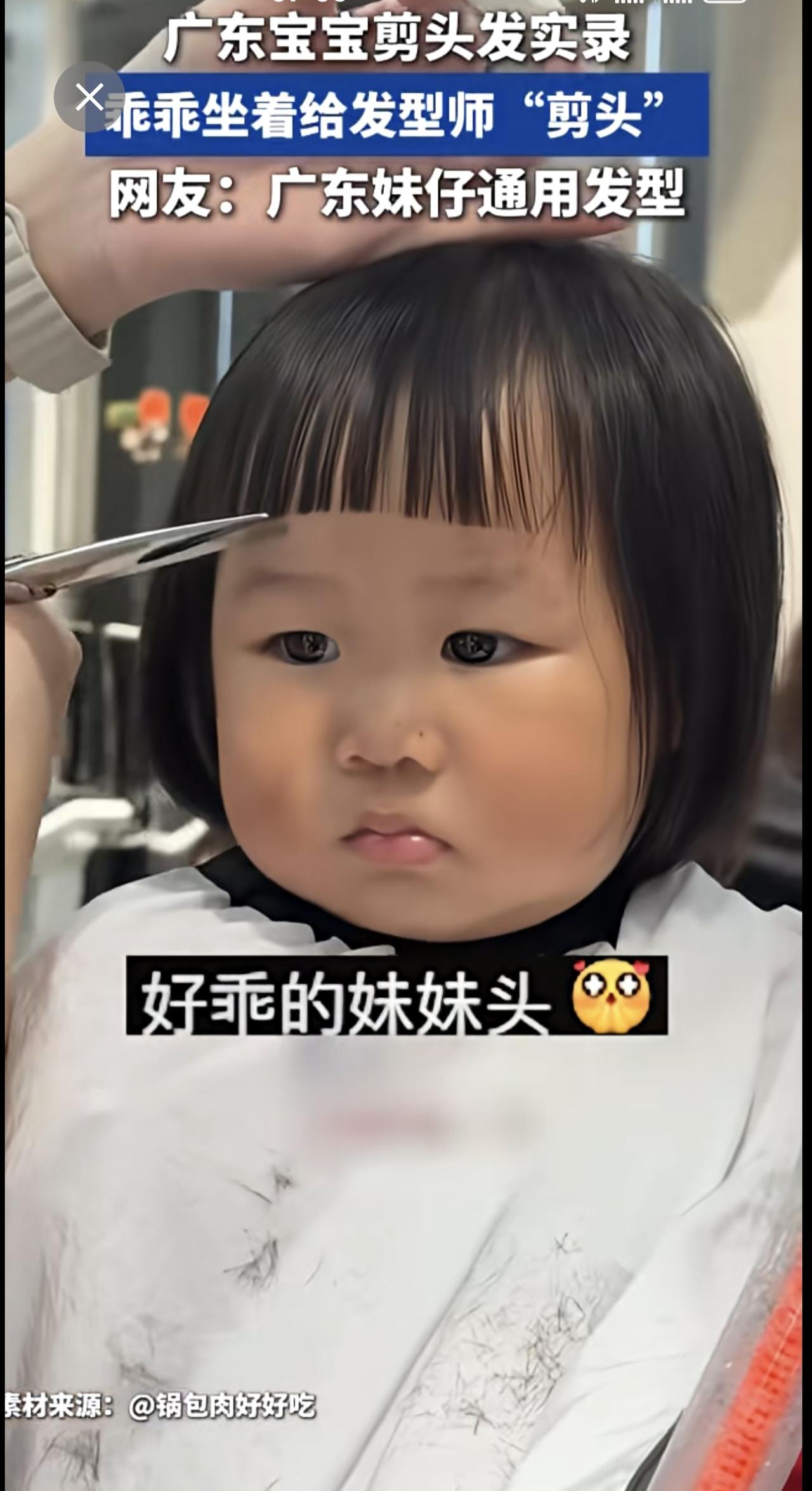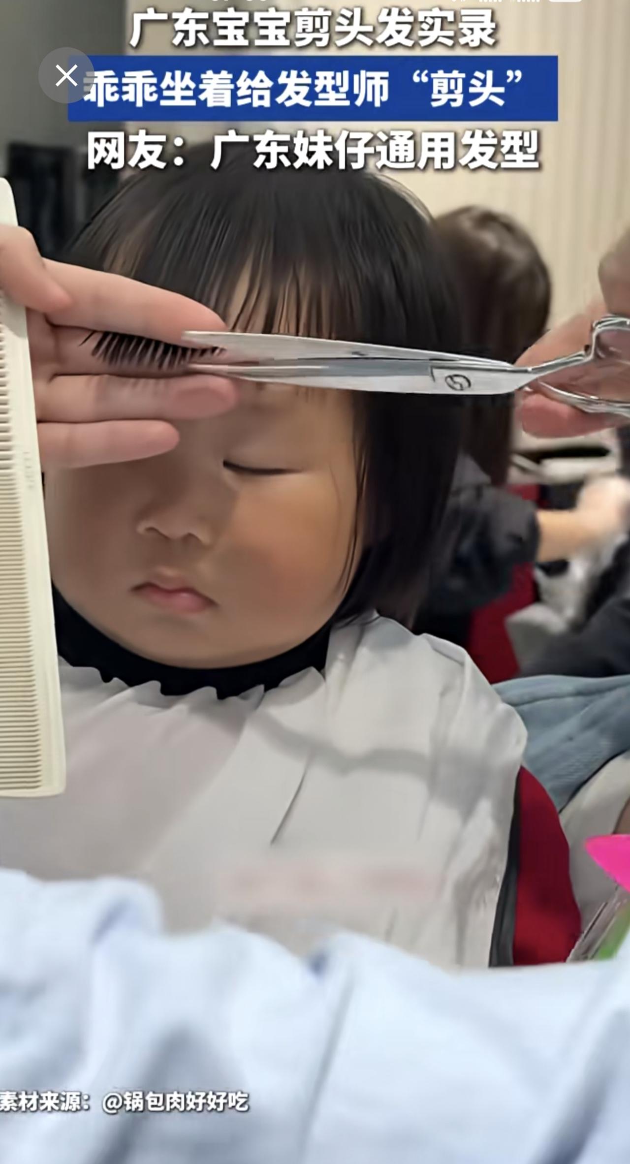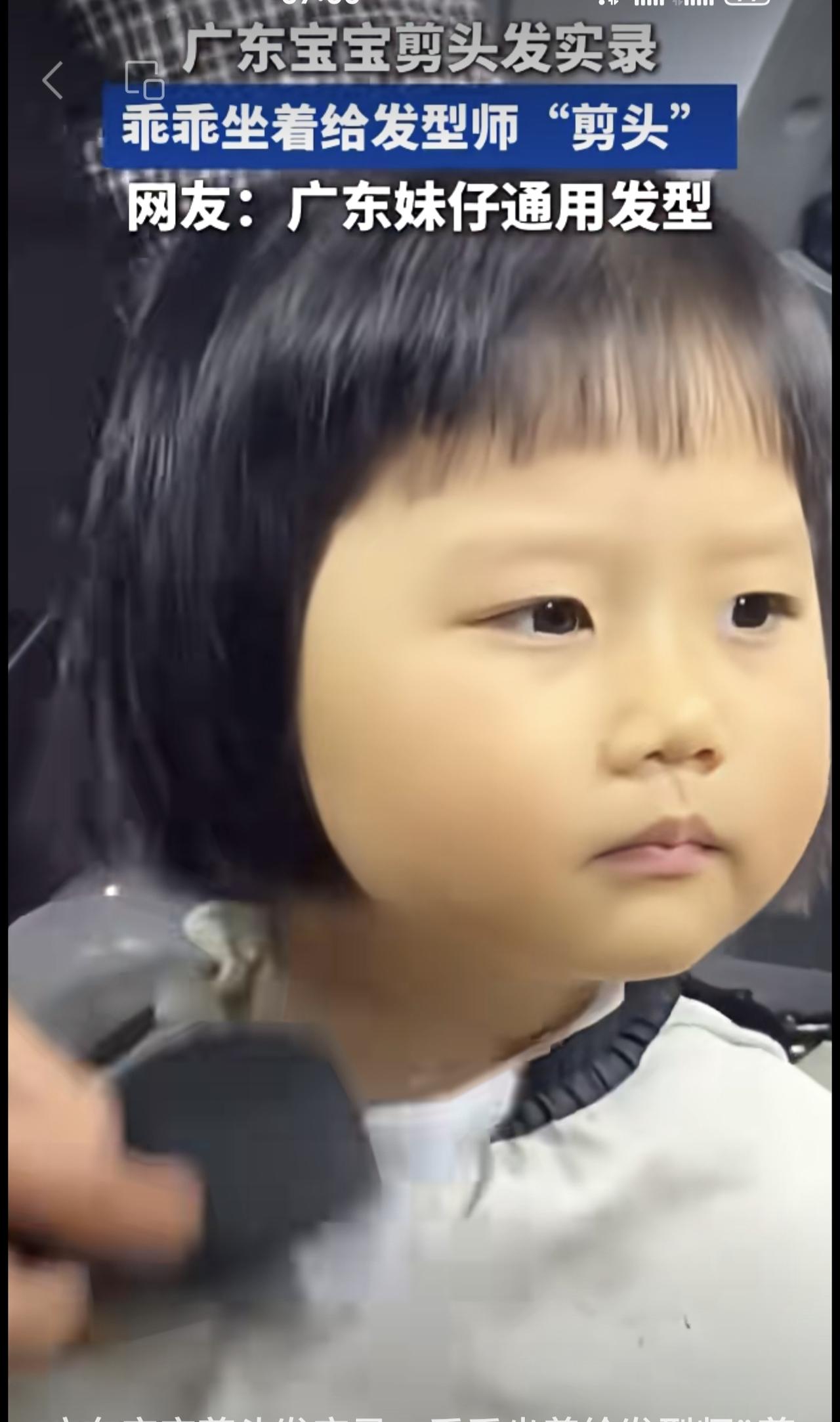 广东宝宝剪头发实录,乖乖坐着给发型师”剪头“,网友:广东妹仔通用发型。(视频来源