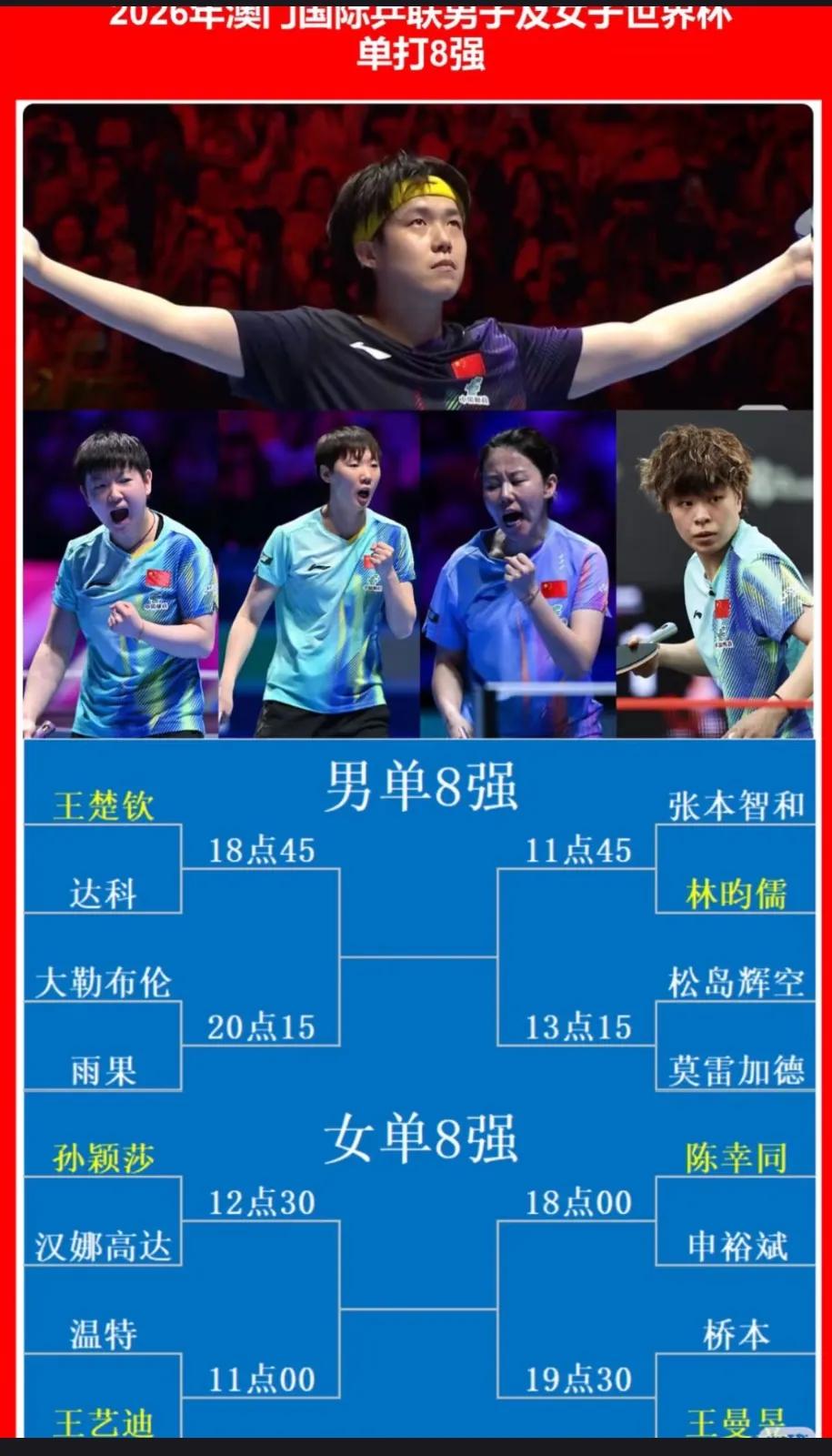 4月4日澳门世界杯4强决赛 国乒女队进8强的4人,男队王楚钦一人,王楚钦不要有压力一个人进8强也是面对一个对手,4个人进8强也是每个人有自己的对手,进入8强的球员都是世界一流水平,水平都在伯仲之间,就看谁的心态好,现场解题能力强,每一场比赛都是惊心动魄的精彩绝伦的经典比赛。[赞][赞][赞]理性客观的欣赏竞技体育比赛才是享受竞技体育带来的乐趣。