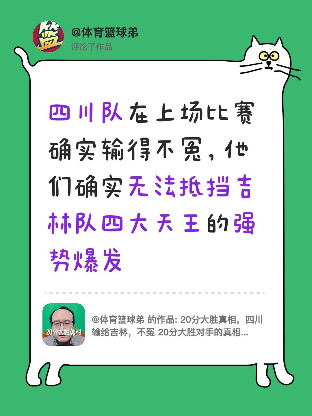 我评论了@体育篮球弟 的作品:四川队在上场比赛确实输得不冤,他们确实无法抵挡吉林队四大天王的强势爆发