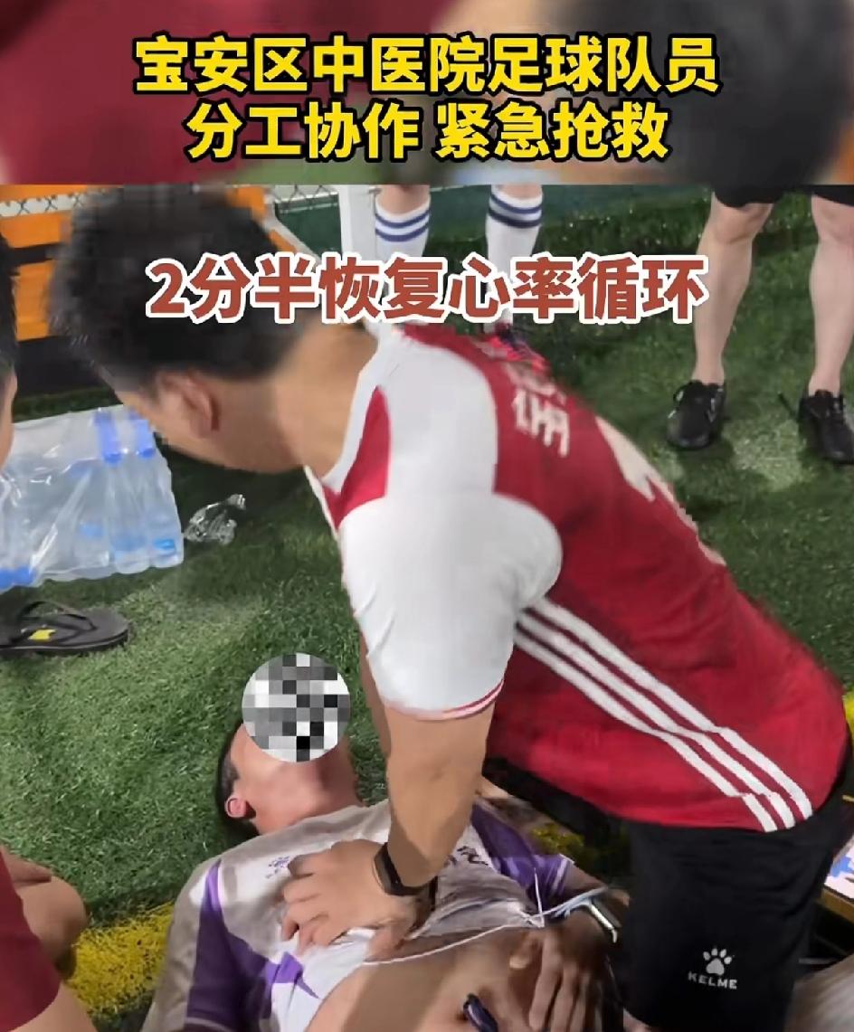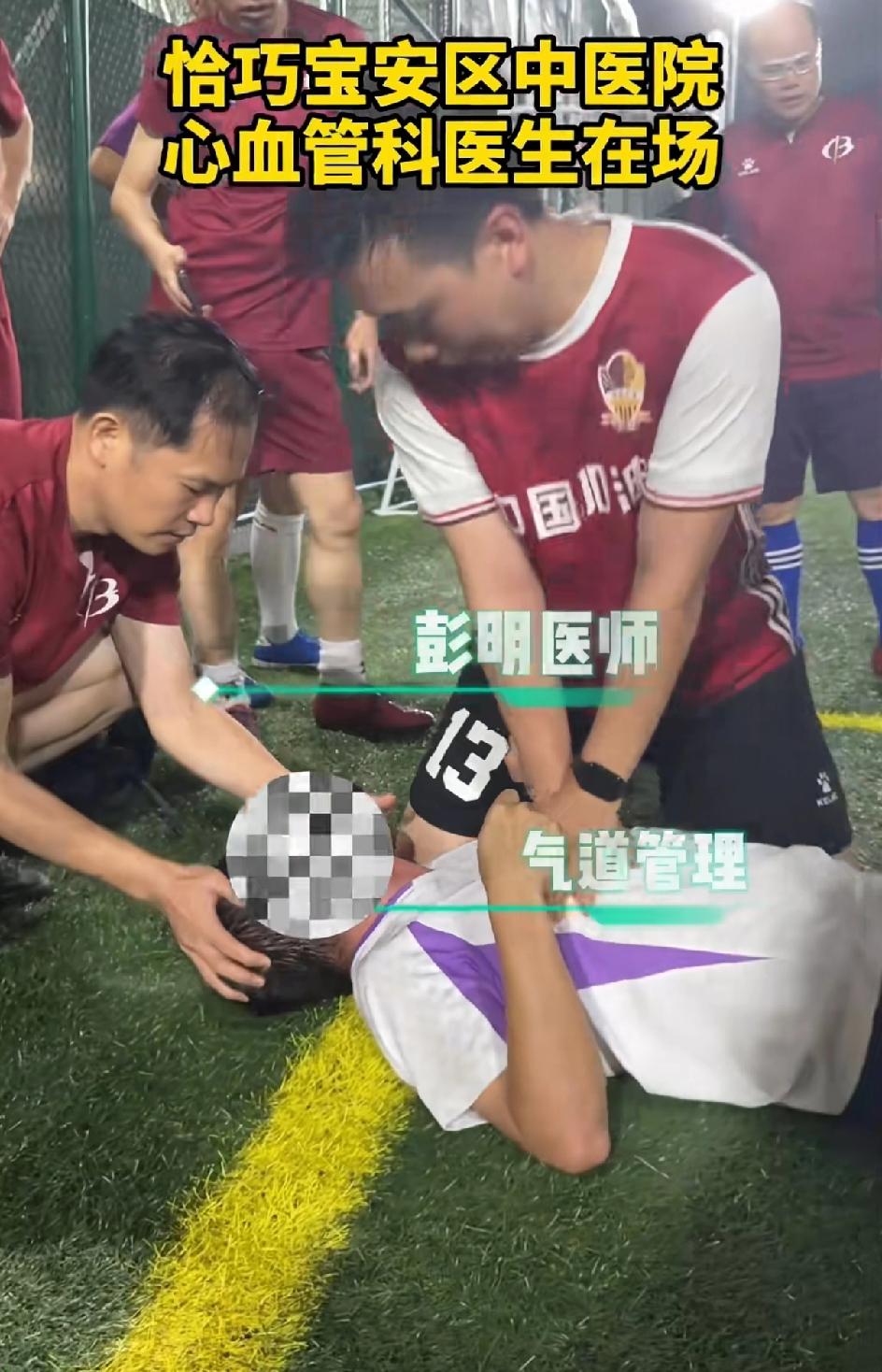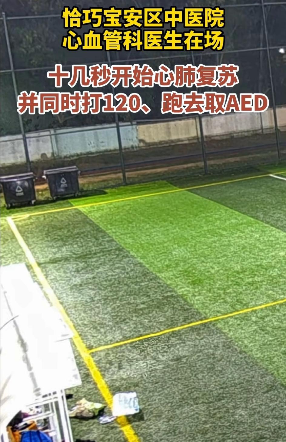 4月2日深圳宝安足球场有位球员在球场,19:14:20的时候,突发心源性猝死,出现意识丧失抽搐,倒地昏迷。本身他们这次参赛的队员全是宝安区中医院的医生们。那就有球员喊医生,医生快过来,这里有人晕倒了,也同时拨打了120,还有人跑去取AED。前后十几秒钟的时间,心血管科的彭明医生赶紧给他进行心肺复苏。2分半钟的时候,患者恢复了心跳。简直就是个奇迹,院外心肺复苏的成功率仅有1%。患者恢复意识后,大家都在那里欢呼,120的急救的担架也到了,迅速送到医院。这个人很幸运,天时地利人和。 但不是每个人都能这么幸运。有心脏方面问题的还是及时检查做心冠造影。