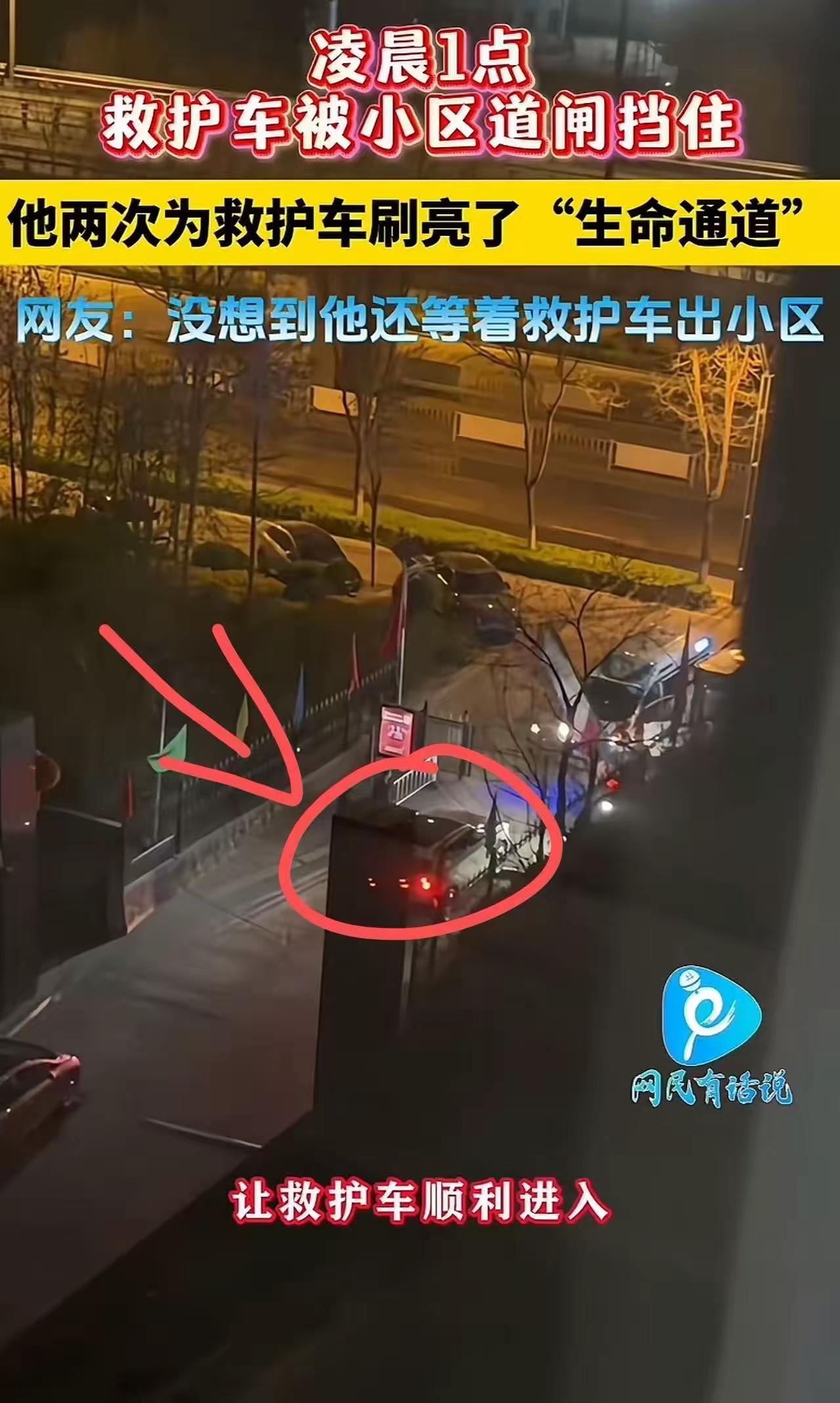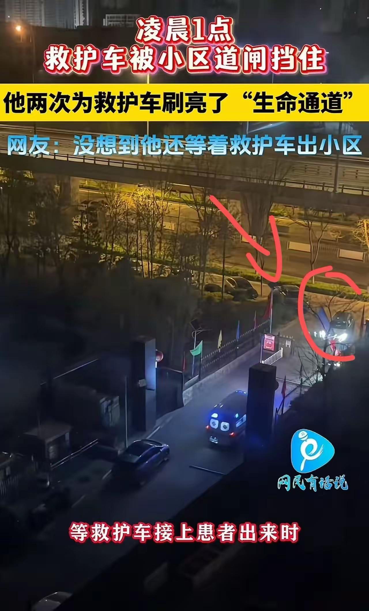 凌晨1点,救护车的警报声划破寂静,却在一道冰冷的道闸前戛然而止。车上,是生死时速;车外,是一道刷不开的“电子围墙”。 这一幕发生在山西太原某小区。据现场目击者描述,救护车抵达时,门卫室无人值守,自动识别的道闸系统对救护车毫无反应。司机急得连续鸣笛,楼上甚至有被吵醒的居民探出头来张望,却没有人知道该怎么办。时间一秒一秒过去,每一秒都可能是脑损伤、器官衰竭,甚至是一条生命的倒计时。 就在所有人都束手无策时,一位穿着睡衣的大哥从旁边楼栋跑了出来。他光着脚趿拉着拖鞋,显然也是从睡梦中被吵醒的。他没有犹豫,直接跑到道闸旁的扫码付款区——那里本是给临时访客用的,一次一杆,收费两元。 大哥掏出手机,扫码,付款,道闸升起。 救护车呼啸而入。十几秒后,车停稳在单元楼下,担架被快速抬出。然而让人没想到的是,急救人员上楼接上病人后,下楼准备离开时,道闸又落下了。 大哥还没走。他一直站在寒风里等着。再次扫码,再次付款,道闸再次升起。救护车顺利驶出小区,警报声渐渐远去。而那位大哥,默默收起手机,转身回了家。 这段被小区监控拍下的画面传到网上后,迅速刷屏。有人算了一笔账:两次扫码,一共四块钱。但网友说,这四块钱,买回的可能是一个家庭的完整。 这起事件之所以让人破防,不是因为它有多惊心动魄,而是因为它太真实了。 真实到我们每个人都可能遇到——深夜突发急病,叫了救护车,却被小区的人车分流、智能道闸、无人值守这些现代管理手段,活生生挡在门外。物业为了省一个人工成本,业主为了所谓的“安全封闭管理”,最后挡住的,恰恰是救命的路。 更让人后怕的是,如果那天没有这位大哥呢?如果大哥听到了但没有下楼呢?如果下楼了但没有带手机呢?每一个“如果”,都是一条可能熄灭的生命。 这件事也狠狠扇了那些“制度至上”的人一巴掌。道闸系统不认识救护车,但人认识。规定是死的,但人心是活的。那位大哥没有去砸门、没有去争吵,他用了最“守规矩”的方式,却完成了最“破格”的救援——他用四块钱,替这个冷漠的系统买了单,替犹豫的邻居们做了决定,替一个素不相识的家庭抢回了时间。 我们总说“生命通道”,但真正的通道从来不是刷开的,是人打开的。希望每个小区的物业都能看到这段视频,去查一查:如果凌晨三点救护车来了,你们的大门,到底能不能开?也希望我们每个人记住,下次听到深夜的警报声,别只做关窗的那个人。 四块钱,买不了奶茶,买不了烟,但能买来一个人活着的可能。这大概是这世上最划算的一笔账。 为这位大哥点赞,也愿我们都能成为那个愿意在深夜里,为陌生人扫码的人。