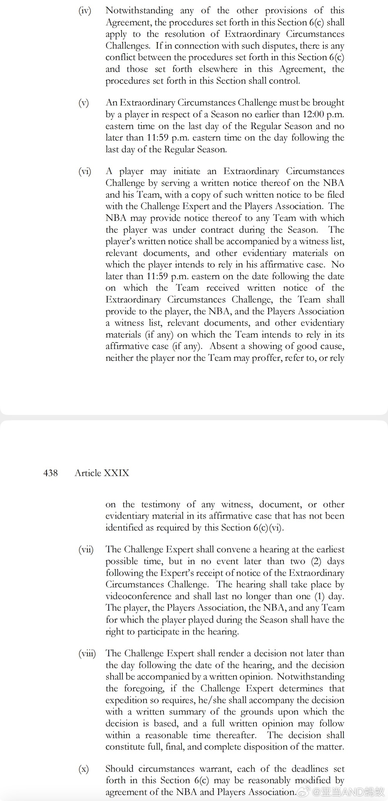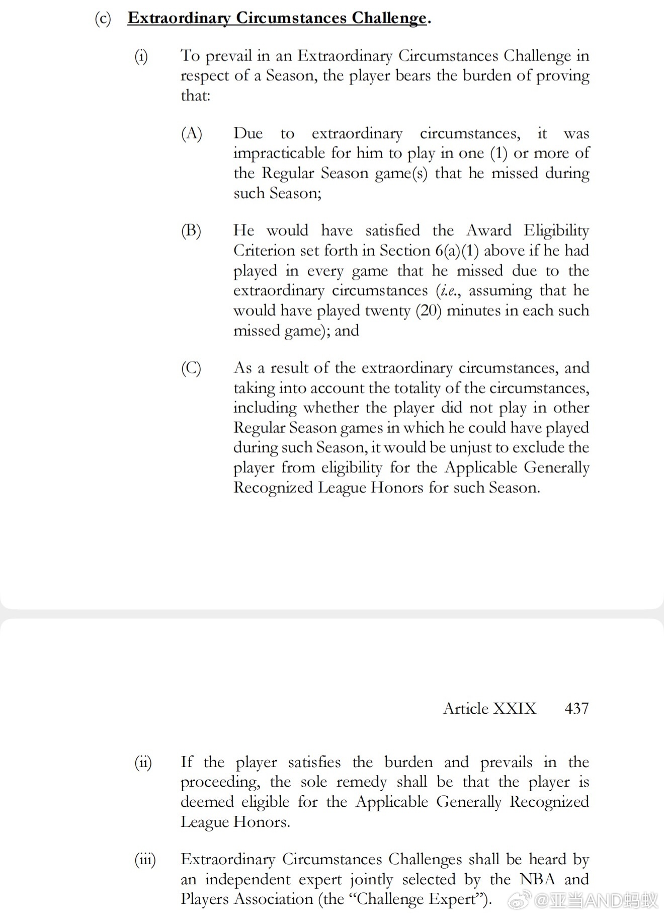 Extraordinary Circumstances Challenge:NBA劳资协议中针对“65场出场门槛”的特殊豁免条款,也叫:特殊情况申诉,用于为因极端客观原因缺阵,但实际符合奖项实力的球员保留参评资格。