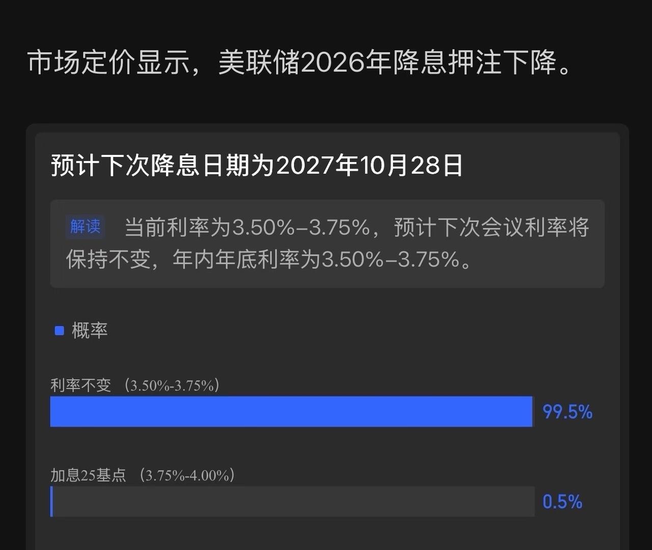非农数据出来后美元指数拉升,降息押注下降 从宏观角度分析,大黄鱼的上涨得益于大漂亮的降息周期,现在降息押注下降,还能一直涨吗?
