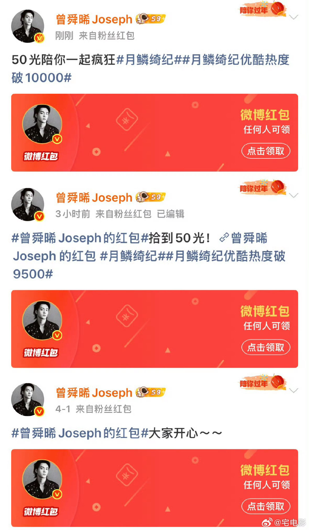 曾舜晞双平台破万男主真的替曾舜晞开心,《月鳞绮纪》破万之后,直接拿下双平台破万男主,太值得恭喜啦曾舜晞爱奇艺优酷双平台破万男主月鳞绮纪