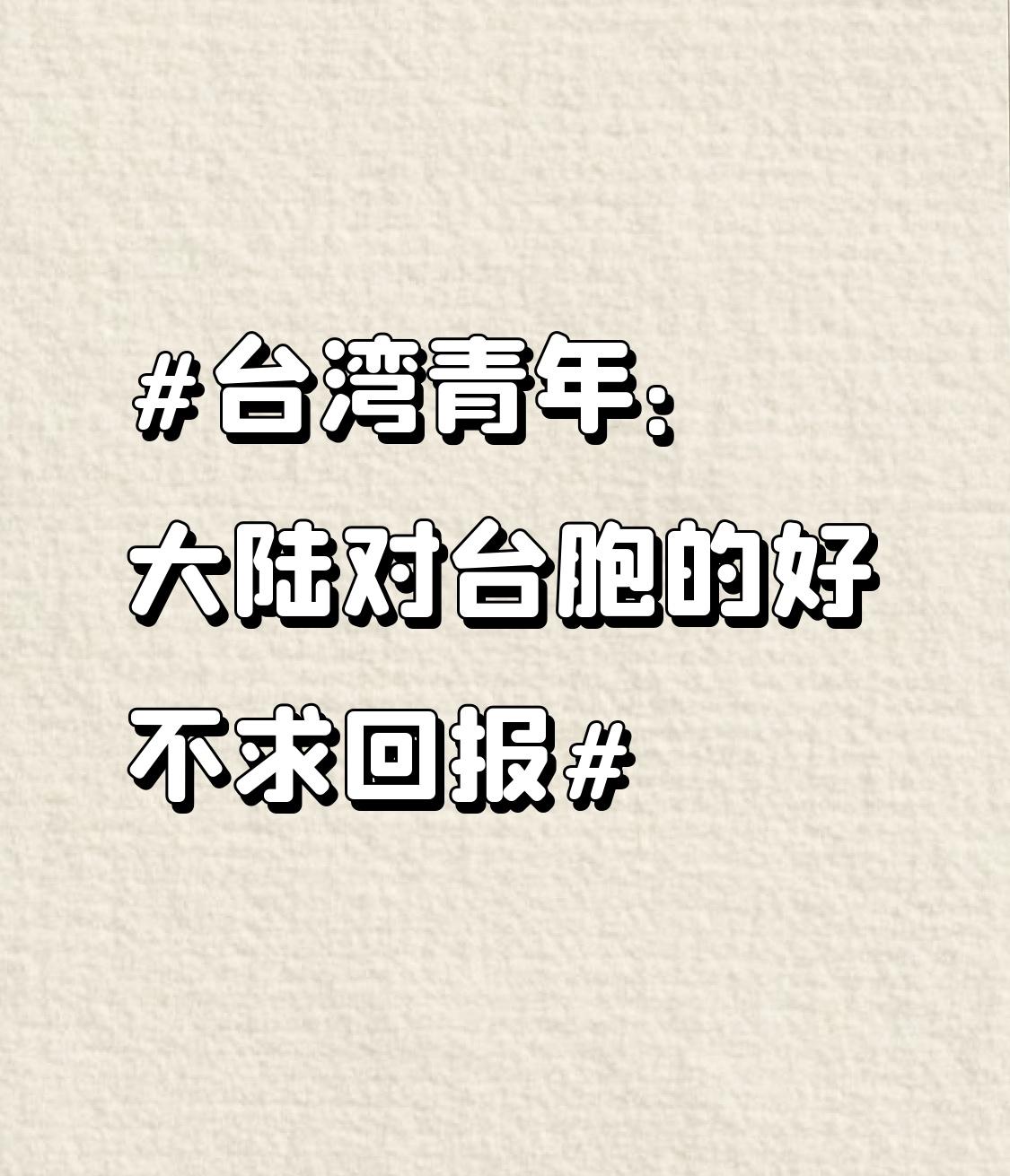 台湾青年:大陆对台胞的好不求回报 台湾青年感慨大陆对台胞的好不求回报,这真不是虚言。在厦门鼓浪屿,阿伯给台湾学生塞红龟粿;深圳湾口岸,志愿者悄悄多复印台胞证件;杭州西湖边,老板娘为台湾姑娘学茶艺备好一切。还有曲阜孔庙的老李,七年义务为台生导览。 大陆对台胞的好,是实实在在的行动,不是为了什么利益。国台办推动两岸互通,修建环岛高铁、京台高速,让台胞回大陆更方便。可民进党当局却一边赚着大陆的钱,一边搞切割,实在让人无语。两岸本同根同源,大陆这份真心,盼着能早日换来两岸更亲密的往来。
