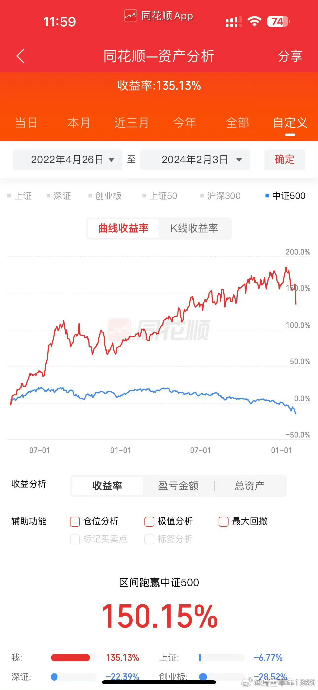 那个3300%的长线帐户,老鸭忘记了关键词,实在无法搜索到了。简单附上一个帐户吧,资金数千万。其实,这是同一位大户朋友的帐户。2024年2月3日,上证创业板见底前夕!真正的实战高手,都极其低调。老鸭认识的高人多了,始终心怀敬佩!个人才疏学浅,唯有仰望。