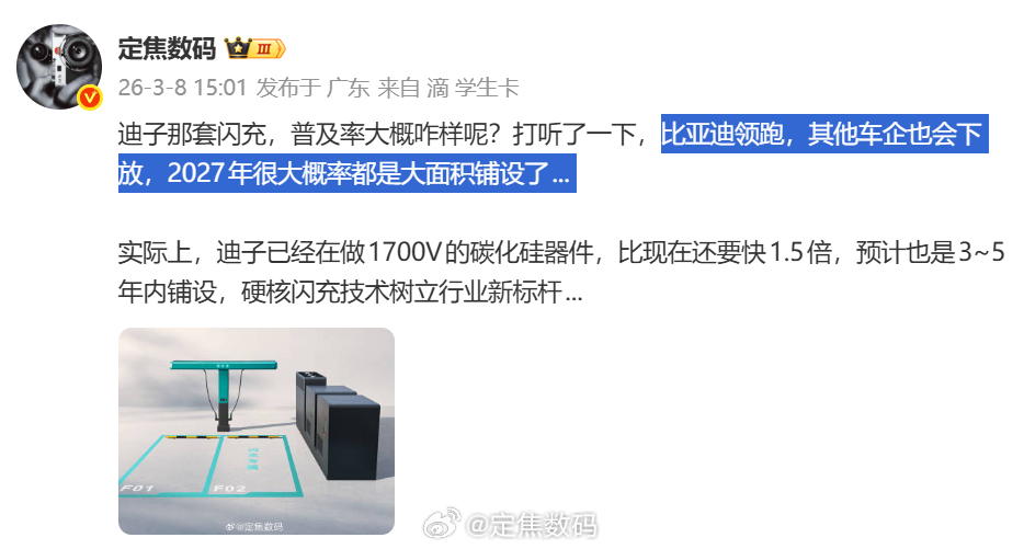 据我所知,明年也就是2027年,大部分车企都准备了自家的1500V碳化硅组件,目前是比亚迪比较快半年左右,半年以后大部分车企都能把充电干进13分钟以内。