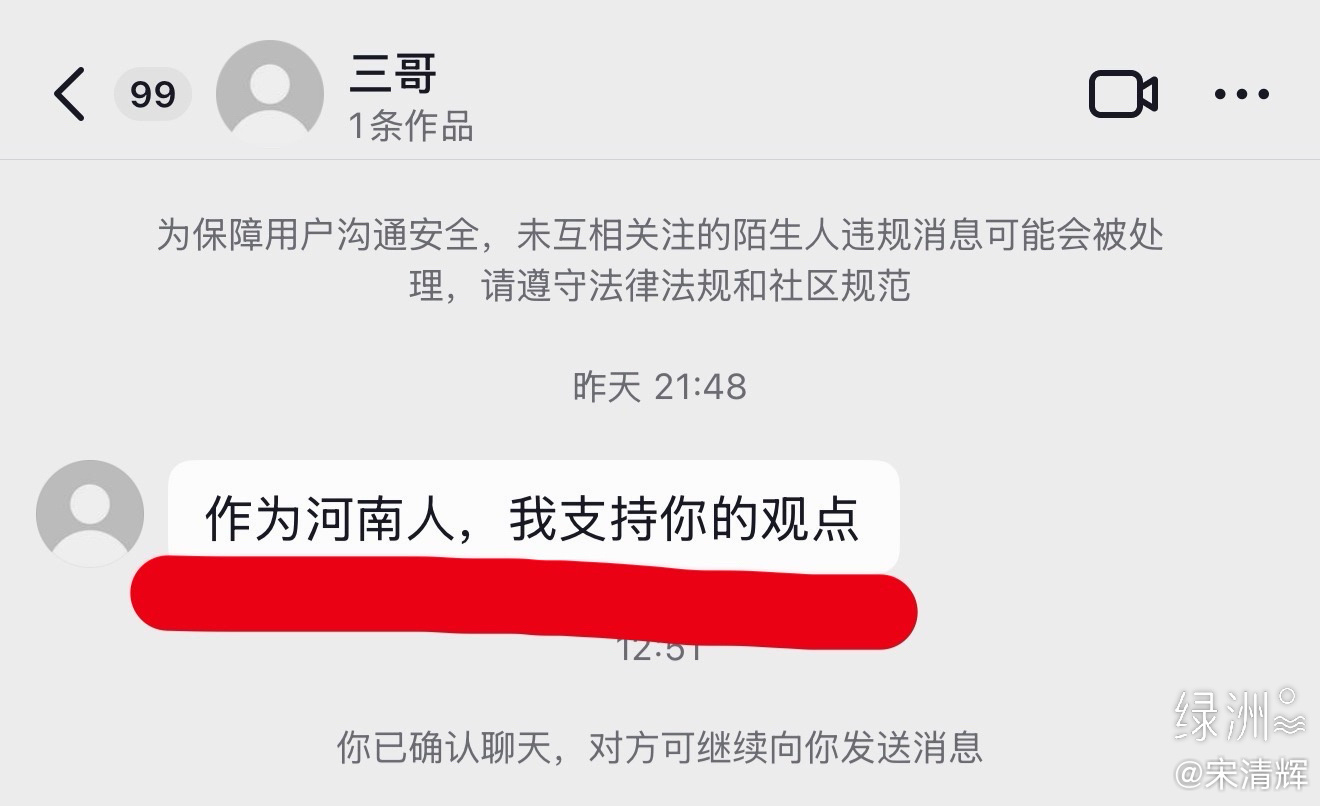 河南网友留言作为河南人,我支持你的观点。于东来打压言论已无底线绿洲