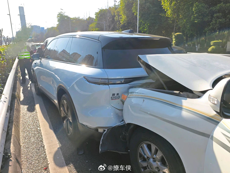 蔚来2代ES8,被后车70码无刹车追尾,后车爆仓全损,全责,前车防撞梁也断了成了事故车。ES8前后防撞梁抗下了所有,但是这种安全级别的防护有一次足矣,命不能拿来开玩笑。蔚来es8大V聊车行车安全