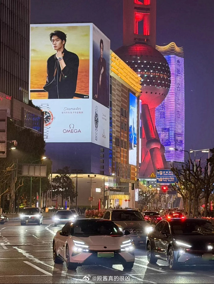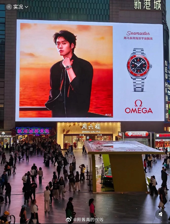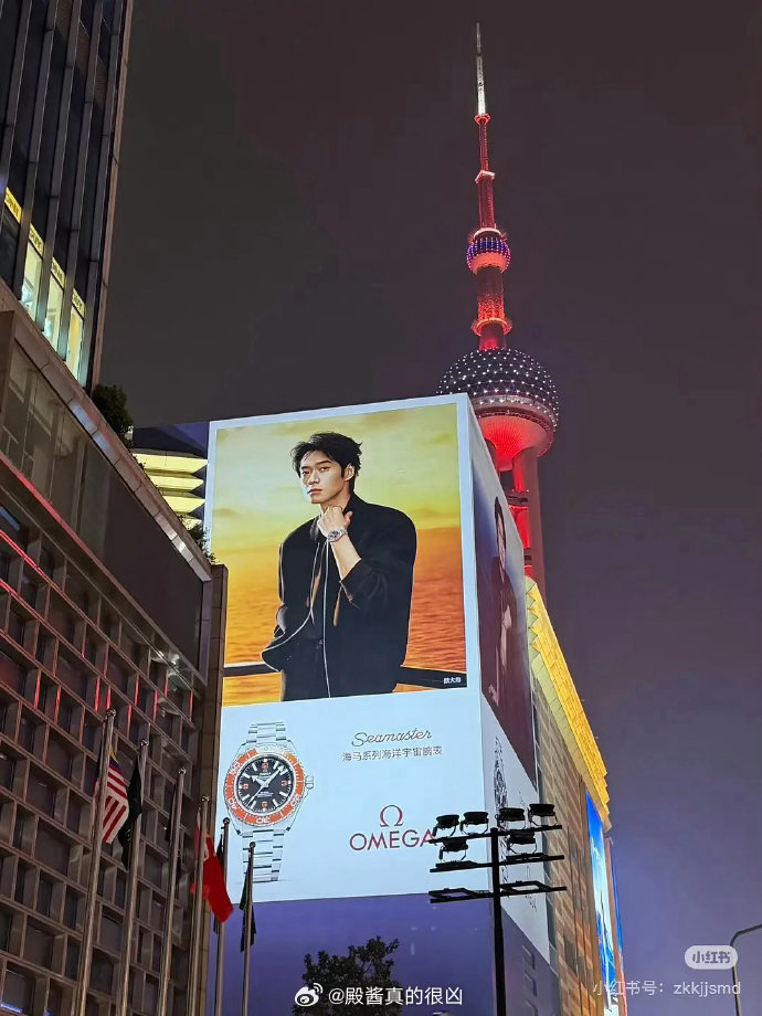 欧米茄给魏大勋投的超大地广!东方明珠,三里屯,太古里多个黄金地段都有,甚至虹桥机场都有超大地广看出来品牌方很爱了