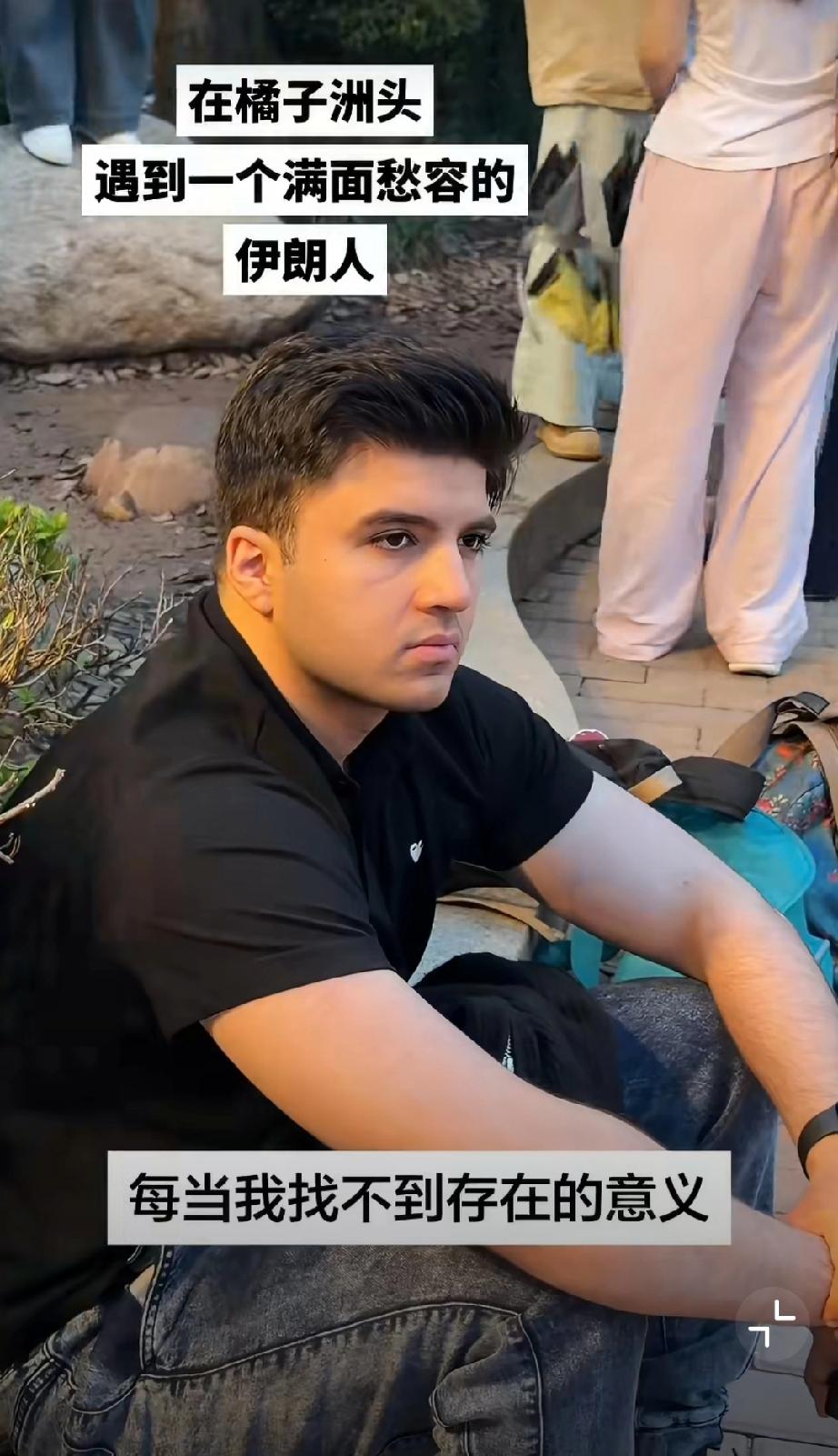 一脸愁容的伊朗男子看着橘子洲头的伟人雕塑,他的心里在想什么呢?毛爷爷青年雕像 领袖人物雕像 橘子洲头旅游区