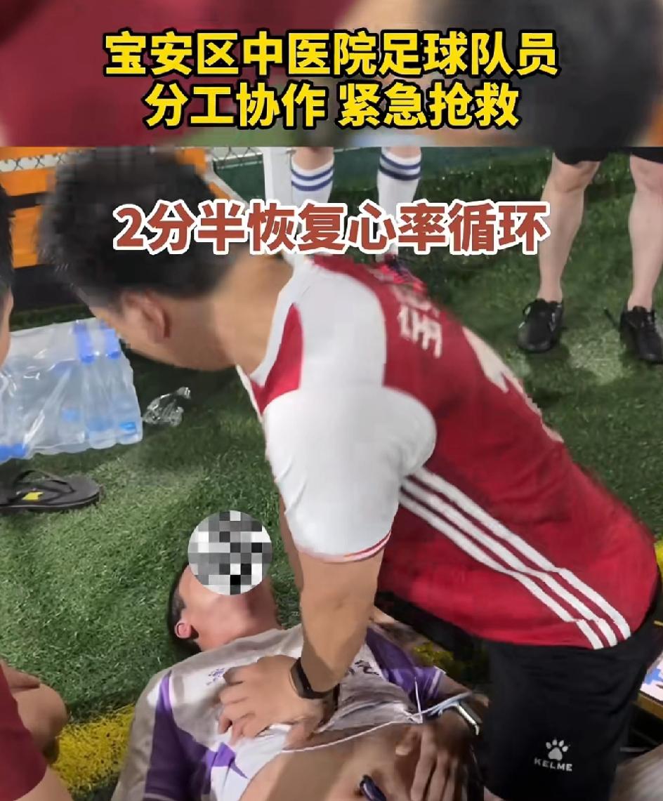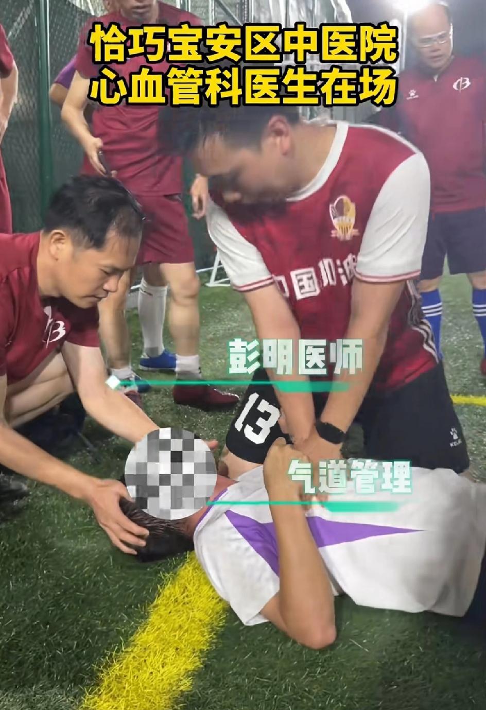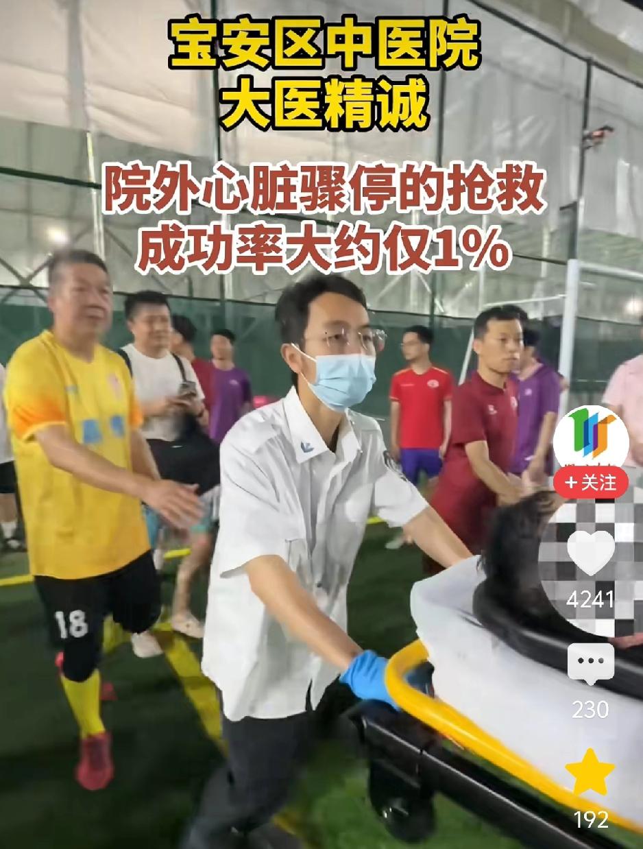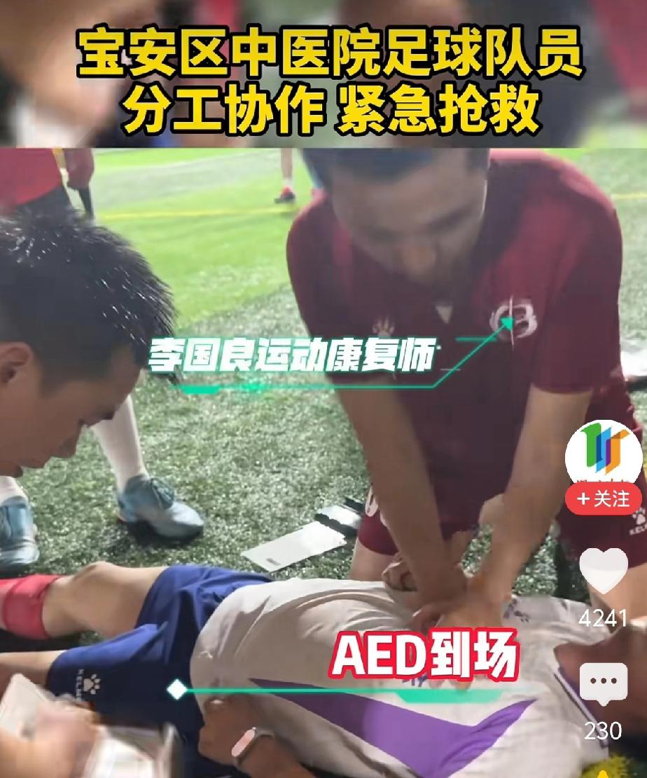 太幸运了!一男子打球的时候突发心源性猝死。心内科医生在场2分半使其恢复心率循环,救了他一命。院外心肺复苏成功率仅1%。事情发生在4月2号,深圳宝安区中医院医生组成的球队正在场上比赛,19:14:20有一队员出现意识丧失,抽搐。场上有人喊医生快过来,心内科的医生彭明赶紧给患者进行心肺复苏,同时AED跟上。2分半钟过去了,倒地的球员苏醒了,简直就是个奇迹。急救担架也到了,赶紧把他送到了医院。大家都说真的是天时地利人和,倒在了医生面前,被医生救起来了。这些医生简直就是天使啊!