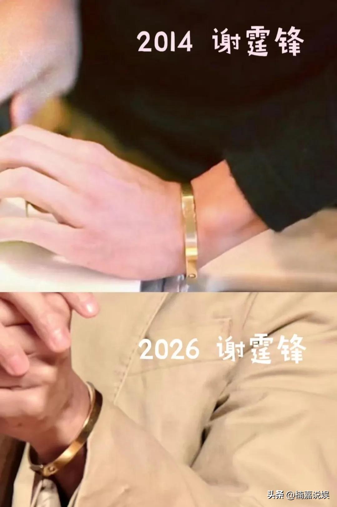 谢霆锋接受香港大学的访问,并且演讲。他戴着眼镜,穿着浅棕色上衣搭配深棕色裤子,鞋子也是日常经常穿的,脸很紧致很瘦,下颌线也挺好看的。 感觉他是真没有明星包袱,穿搭很随意啊。 看他手上戴着镯子,居然是当年和王菲的定情手镯。 2000年,俩人传出恋情后,就戴过同款手镯,后来2003年分手,此后两人各自进入自己的婚姻。 兜兜转转,2014年再度复合,谢霆锋又在公众场合戴过这个手镯。 如今复合十多年了,俩人超级低调,又见他戴这个手镯,估摸是向外界传达“锋菲恋”依然很甜吧。