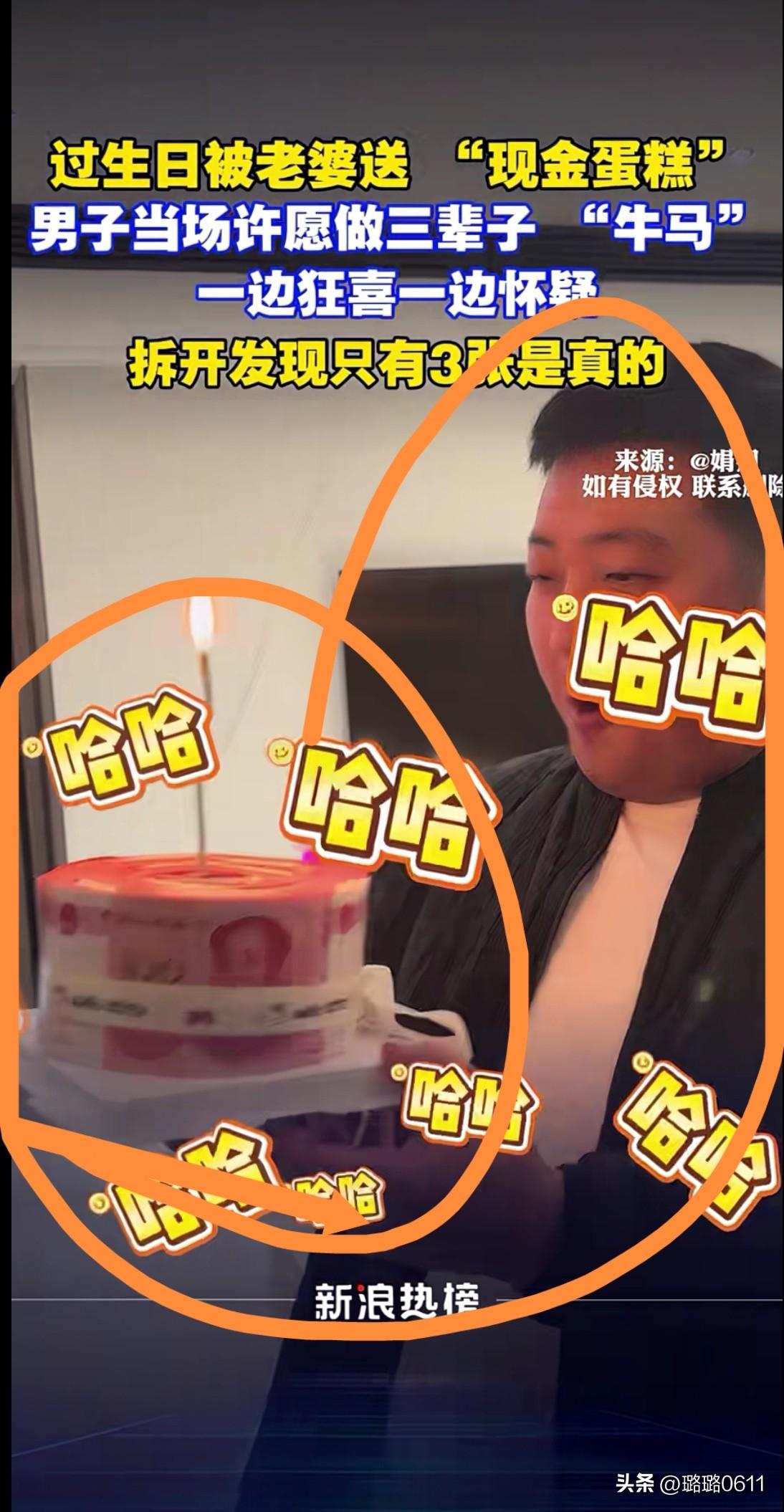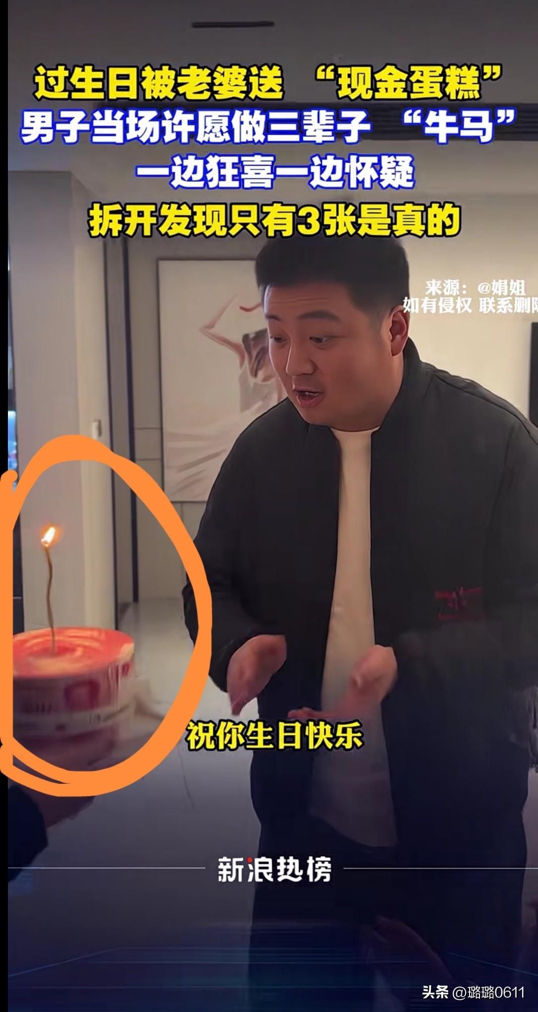 贵州男子生日收到老婆“现金蛋糕”,狂喜许愿做三辈子牛马,拆开瞬间傻眼了! 家人们谁懂啊!贵州一老哥过生日,老婆直接整了个超有排面的“现金蛋糕”! 看着这满满当当的人民币造型,老哥当场就绷不住了,一边狂喜一边嘴都合不拢,当场许愿要给老婆做三辈子牛马,那激动的样子,隔着屏幕都能感受到幸福! 结果拆的时候越拆越不对劲,满心期待地一张张翻,最后发现整整一蛋糕,居然只有3张是真钱! 前一秒还在幸福到上头,下一秒直接从云端跌回地面,这反差感直接拉满! 网友笑疯:这哪是生日惊喜,这是大型“诈骗”现场! 果然夫妻之间的浪漫,全是套路啊!不过能被老婆这么整蛊,也是满满的爱了吧😂