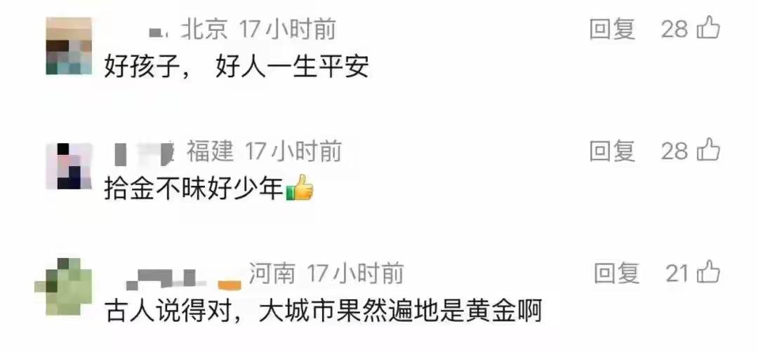 3月27日早8点,深圳罗湖区11岁学生李麒瑞上学途中,在田贝四路捡到标有“投资足金”的50克金条,和同学估算其价值约四五万元后,他用手表致电警察,翠竹派出所民警10分钟后赶到现场。他表示,老师和父母一直教育自己不是自己的东西不能拿。3月30日,李麒瑞和老师乘出租车去派出所处理后续,司机听闻事迹后执意免车费。目前金条由警方保管,正全力寻找失主,其拾金不昧的行为也获网友点赞。 网友评论: 天欲予之而不取,必减其运。人欲以德而束之,必成枷重。孔融让梨年少成名,但也终为美名所累,妻儿皆诛。拾金不昧得其名,拾金而昧得其利。[笑哭] [我想静静]我小时候捡到差不多1000还给失主了,长大后后悔到现在。 财神爷:天降的大财给你,你接不住,以后别指望我了 如果警察局找不到失主,金条咋整?大家想想。 来源:山东省委政法委